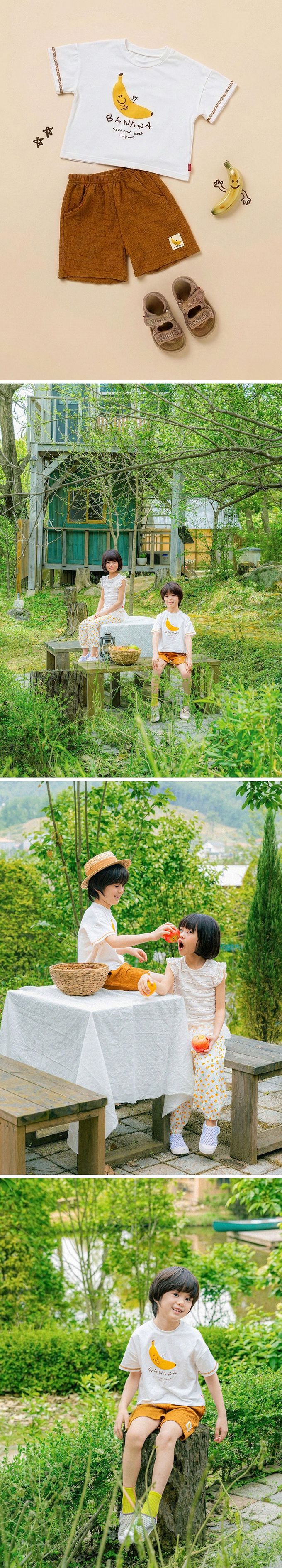 • 品名:童趣抱抱香蕉圖案短袖套裝