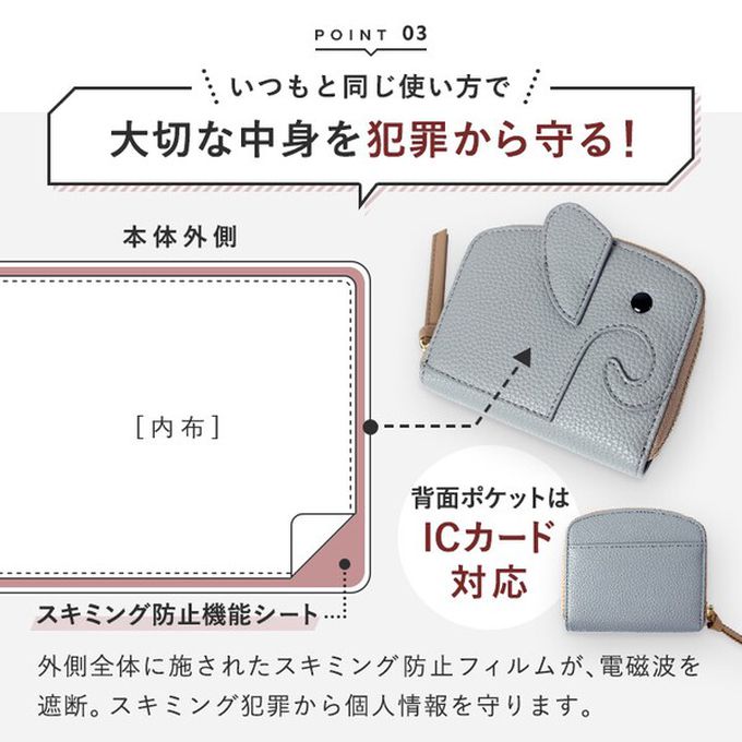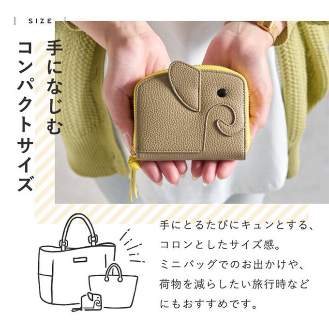 日本 LIZDAYS - 童趣大象輕巧真皮風琴式短夾-(防盜功能)-霧銀