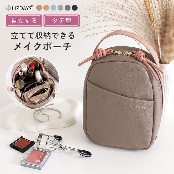 日本 LIZDAYS - 皮革感手提直立式聰明收納化妝包-黑