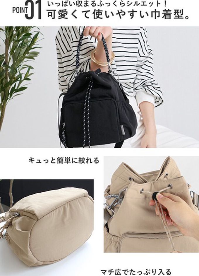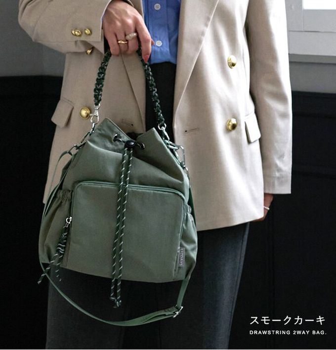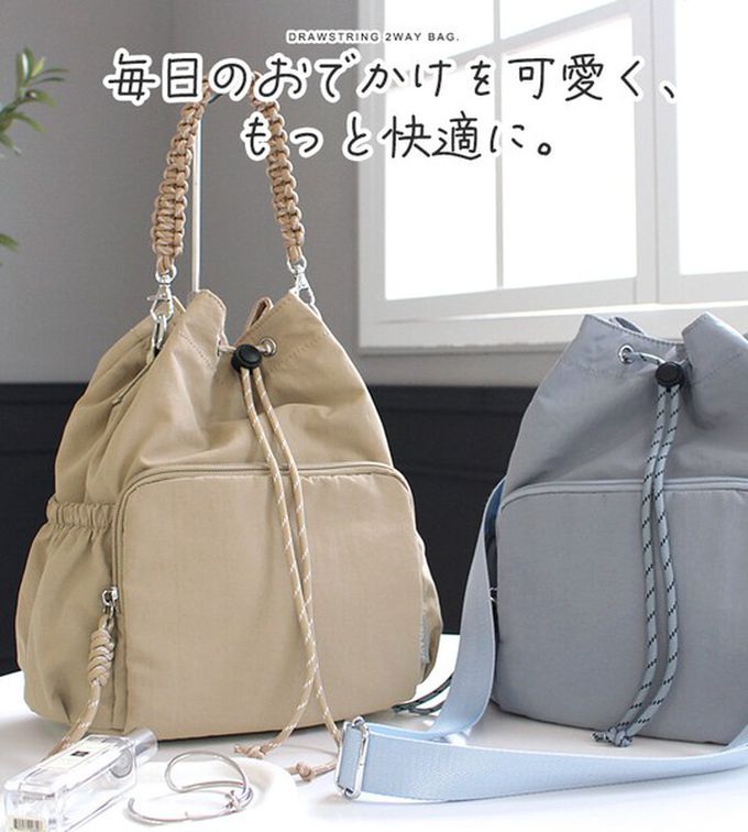 • 時髦抽繩縮口、手提/肩背兩用、大開口設計