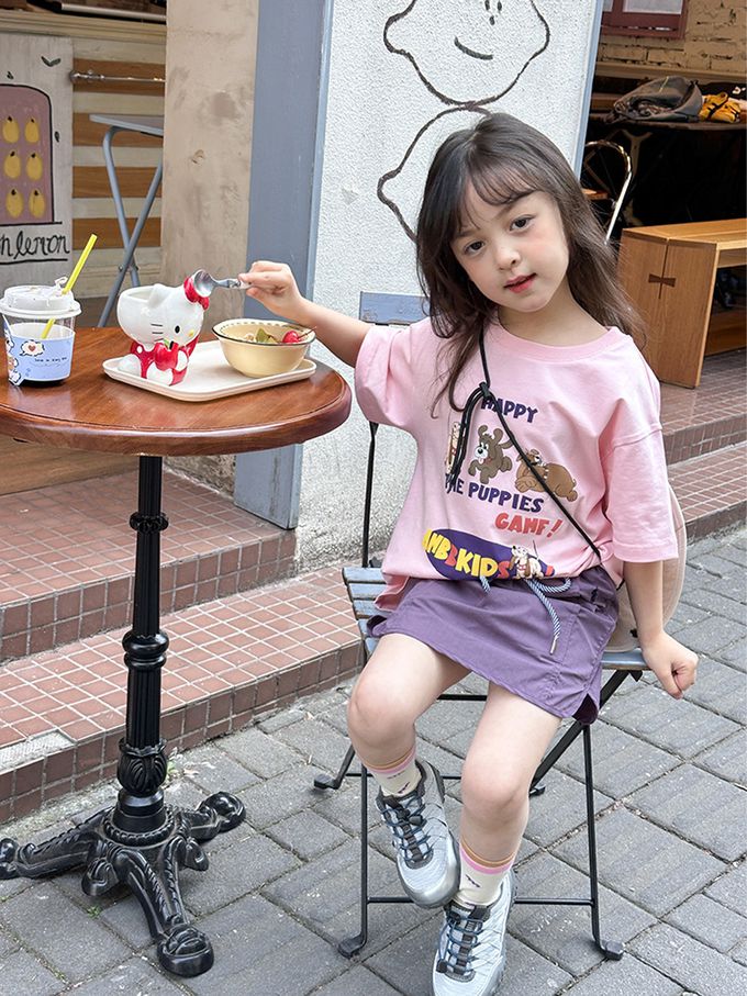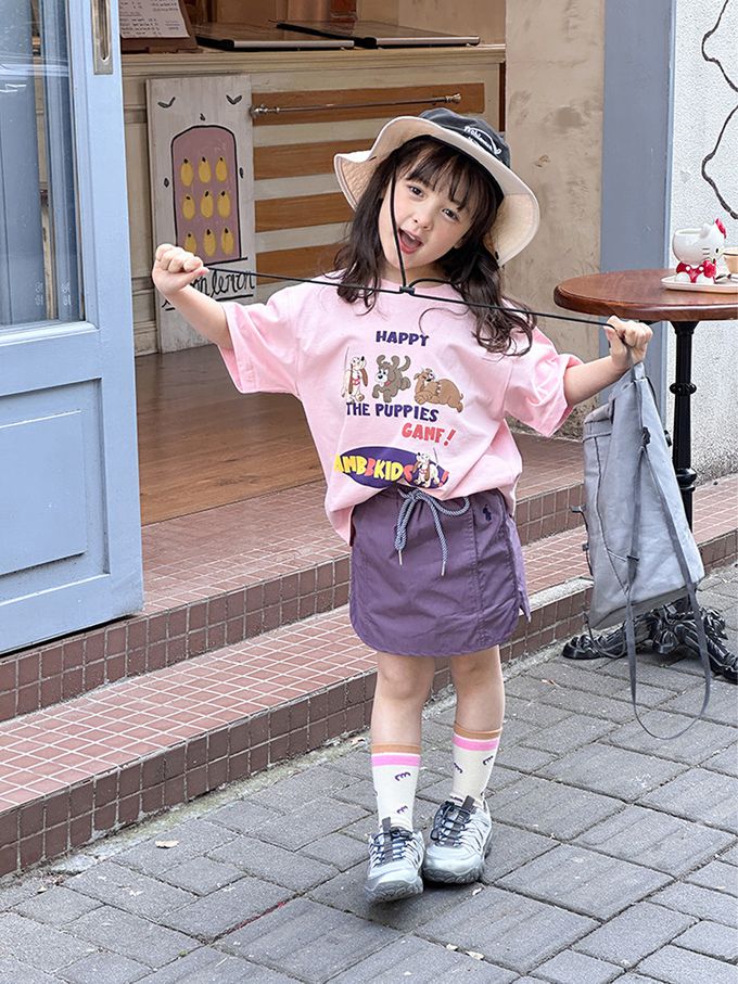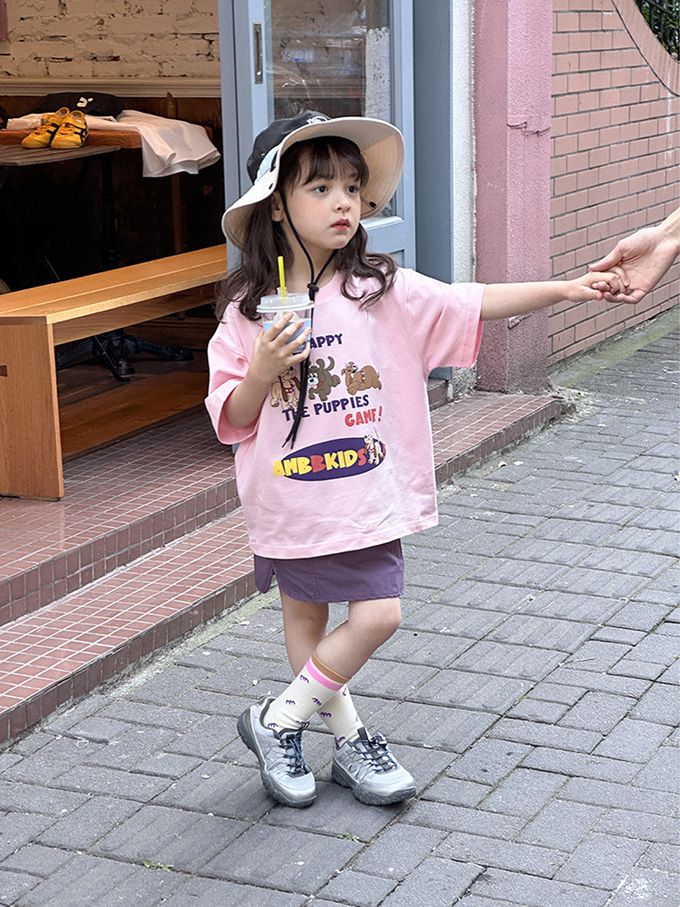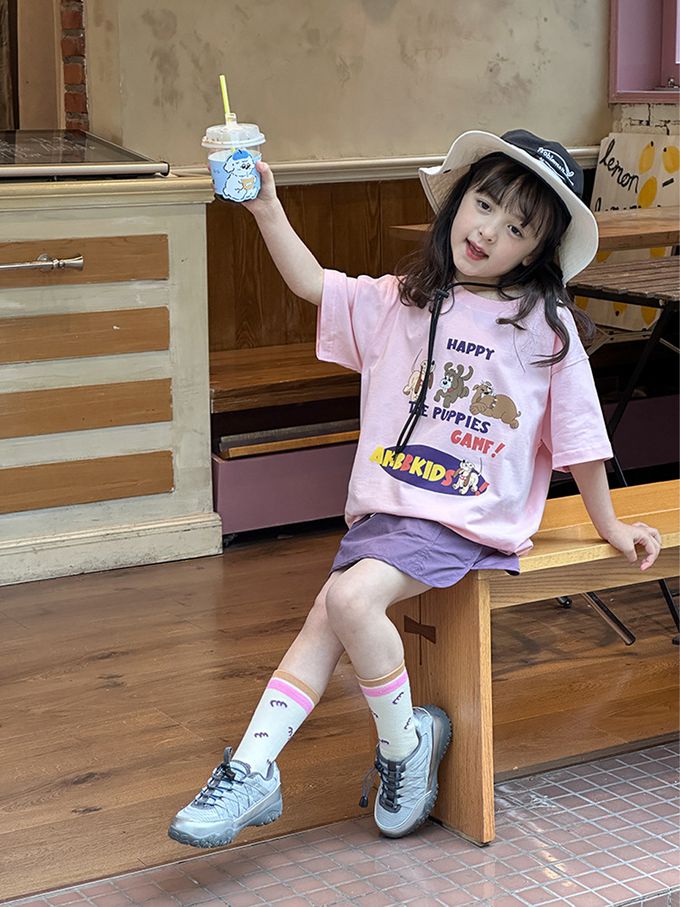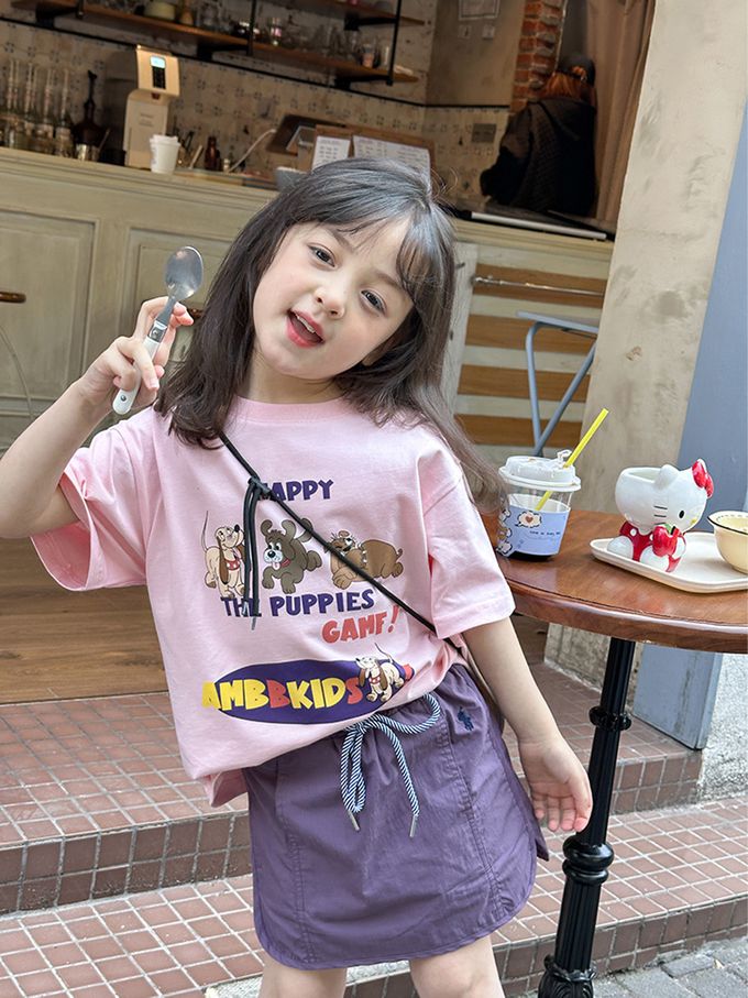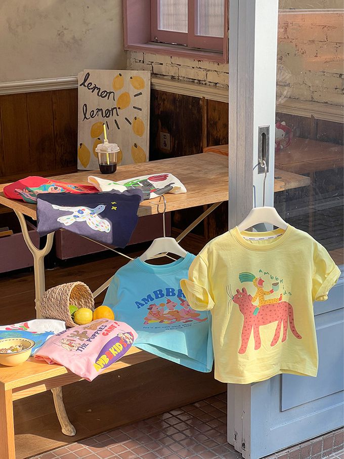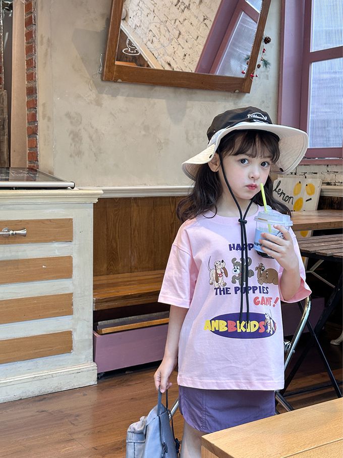 AMBBKIDS - 手繪風美式休閒純棉短袖上衣-粉色