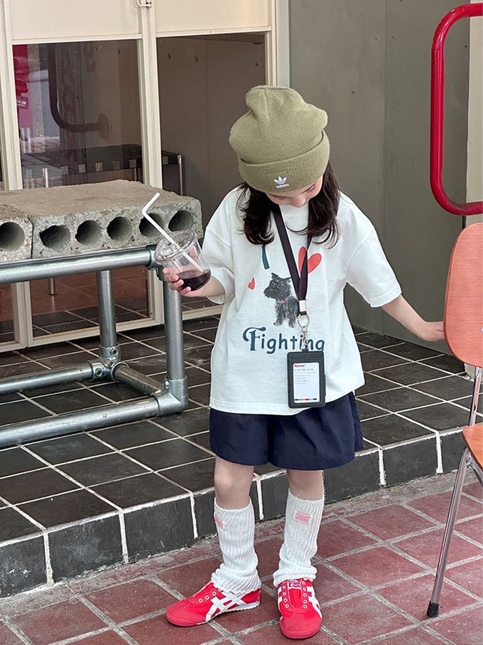 涼感手繪風美式休閒短袖上衣-小狗白色