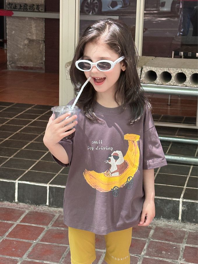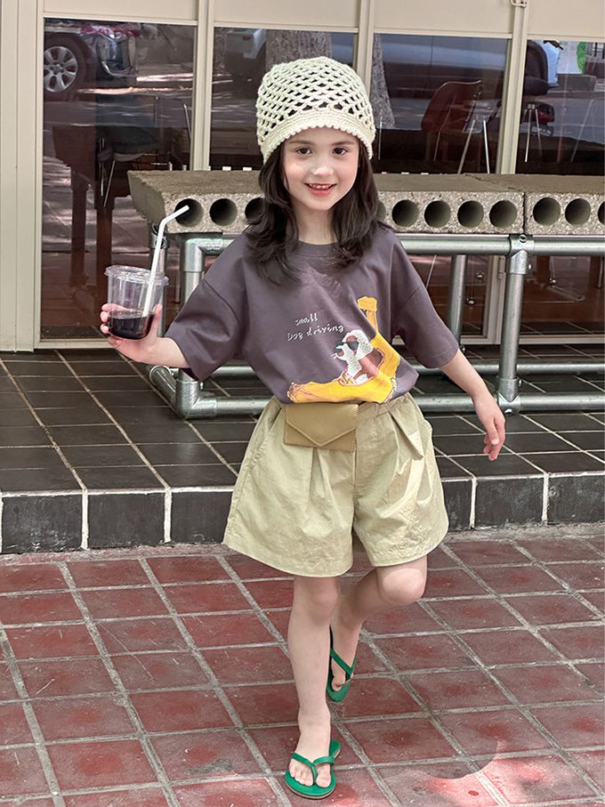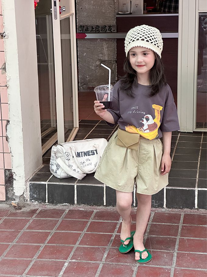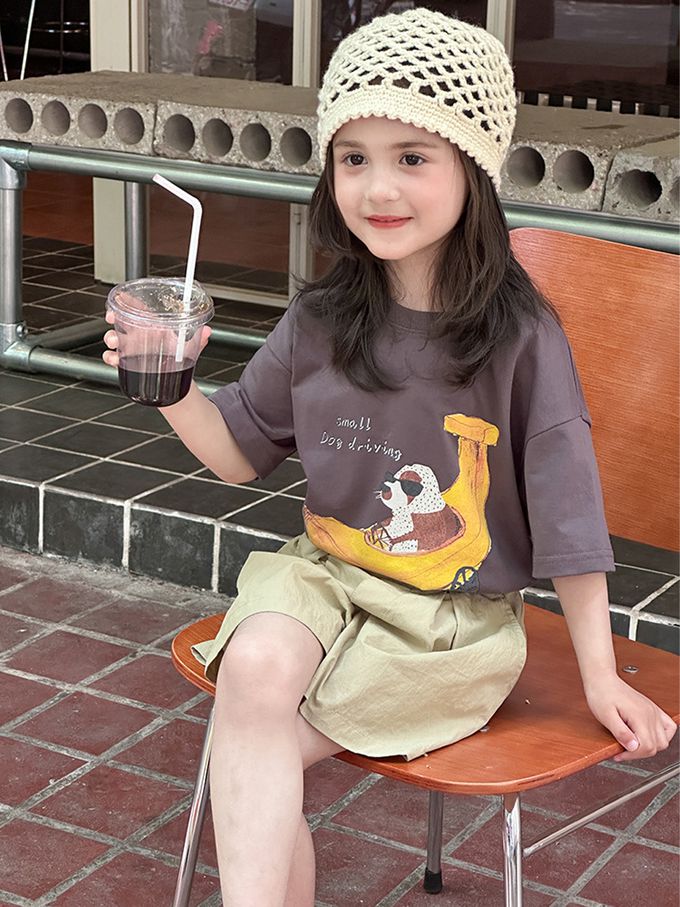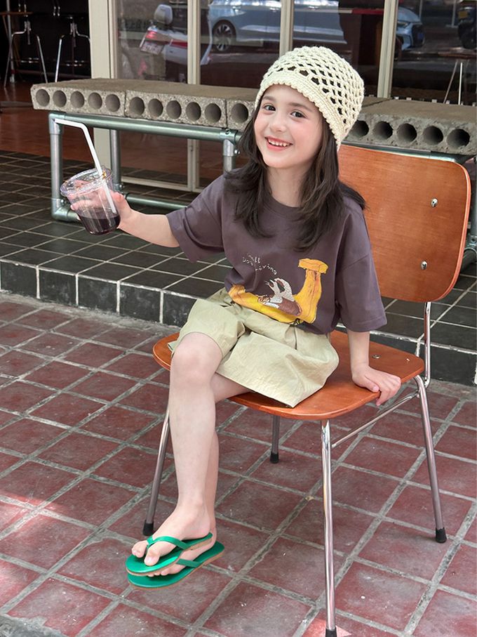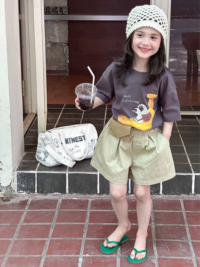 AMBBKIDS - 涼感手繪風美式休閒短袖上衣-灰色