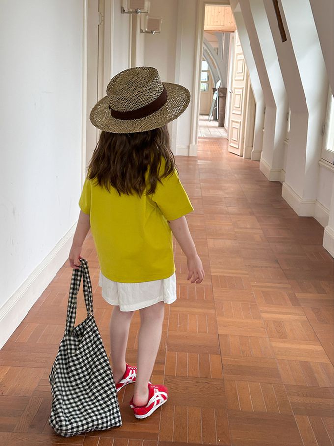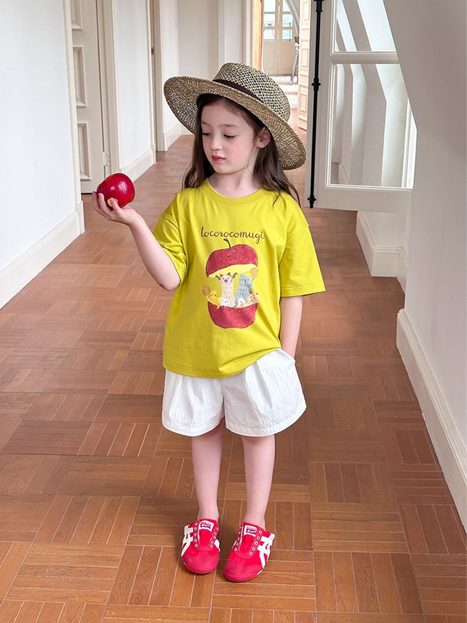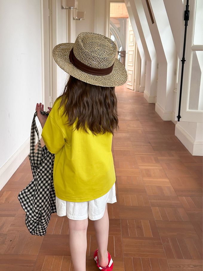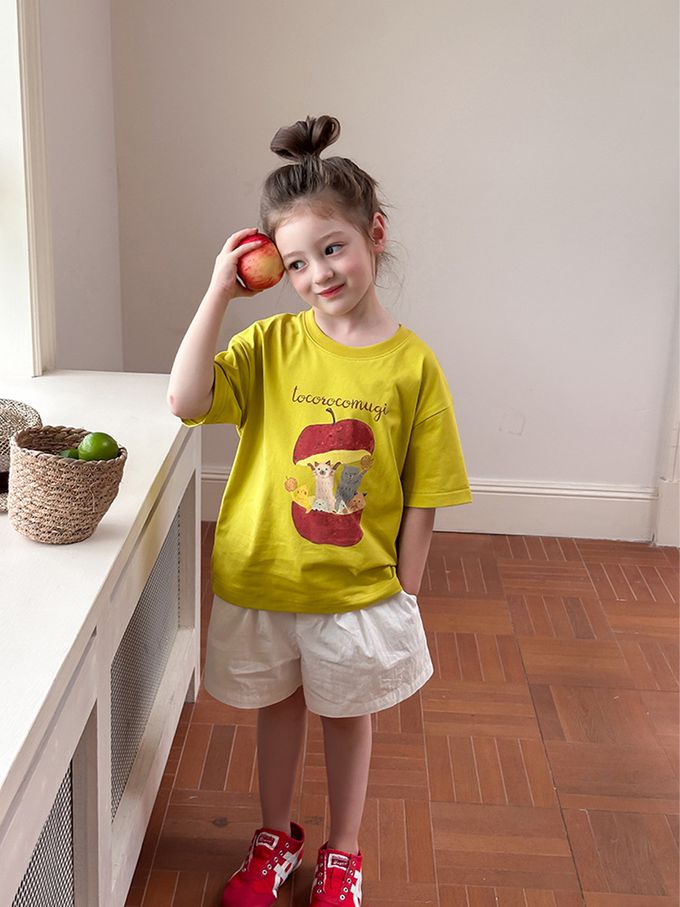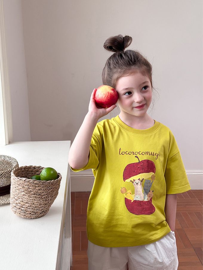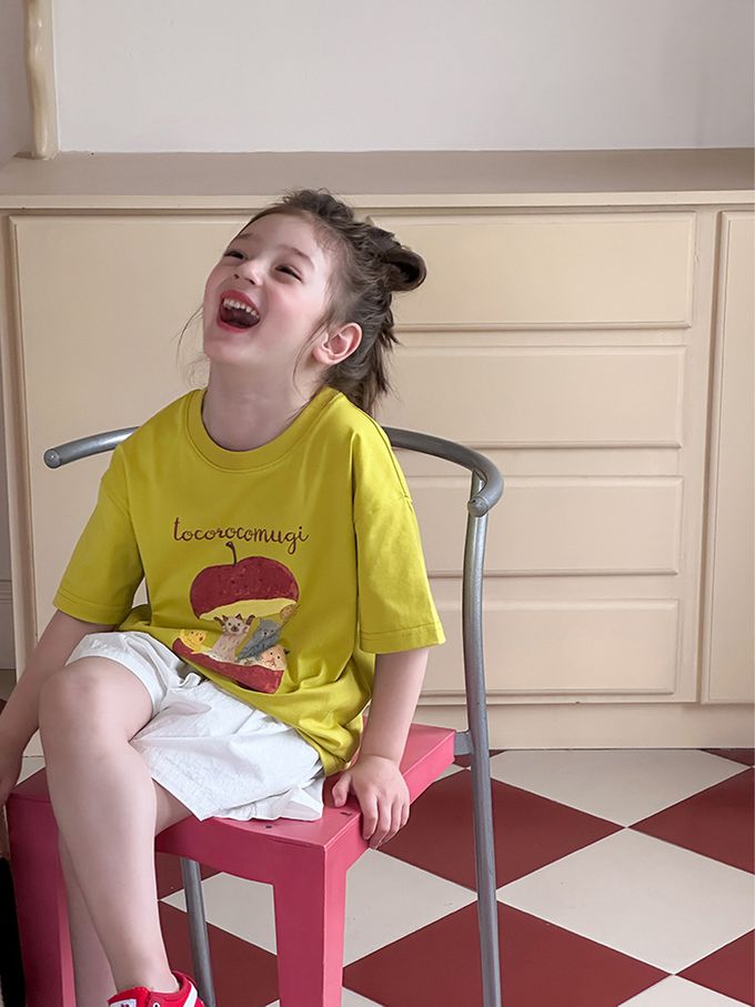 AMBBKIDS - 涼感手繪風美式休閒短袖上衣-黃綠色