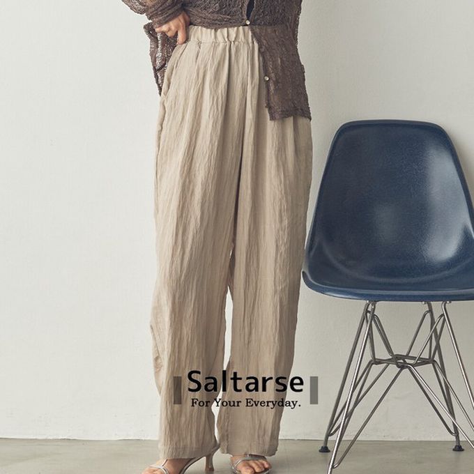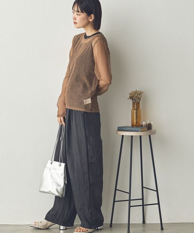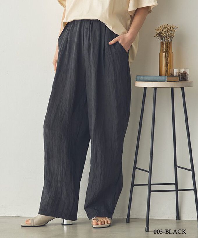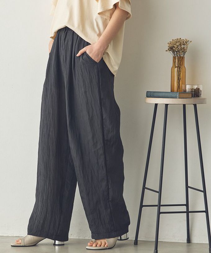 日本 Sans Souci 34+ - 飄逸皺摺柔滑緞面感長褲-黑