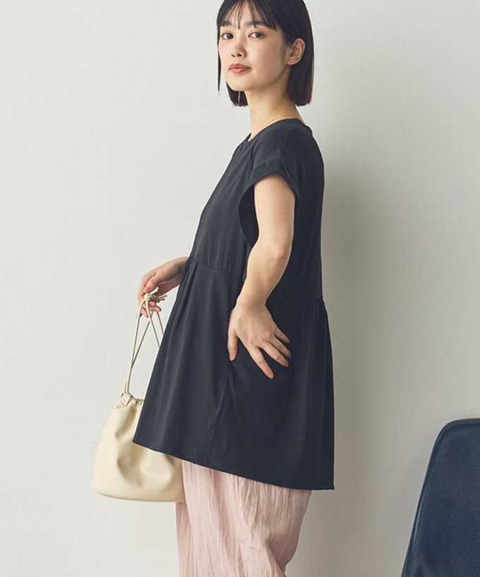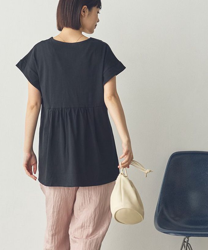 日本 Sans Souci 34+ - 100%棉 V領造型遮肉短袖上衣-黑