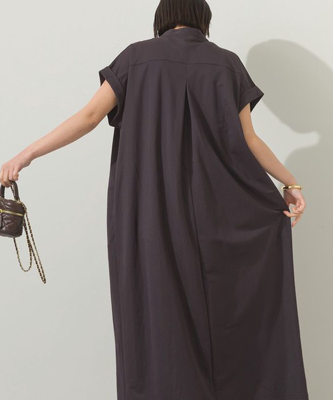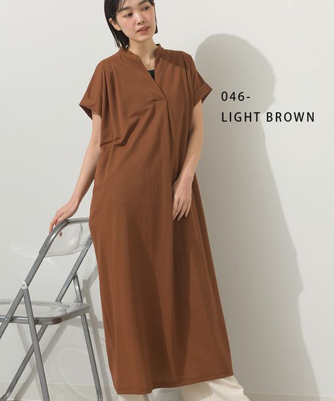 日本 Sans Souci 34+ - 接觸涼感 V領打褶俐落短袖洋裝-灰棕