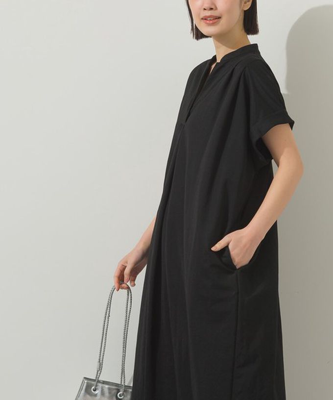 日本 Sans Souci 34+ - 接觸涼感 V領打褶俐落短袖洋裝-黑