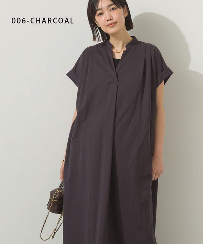 日本 Sans Souci 34+ - 接觸涼感 V領打褶俐落短袖洋裝-炭灰
