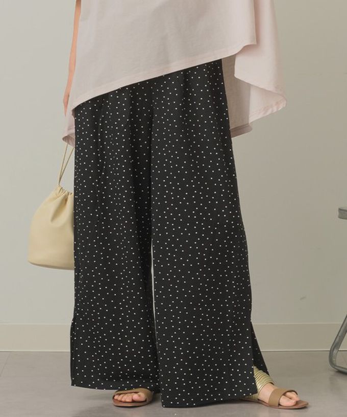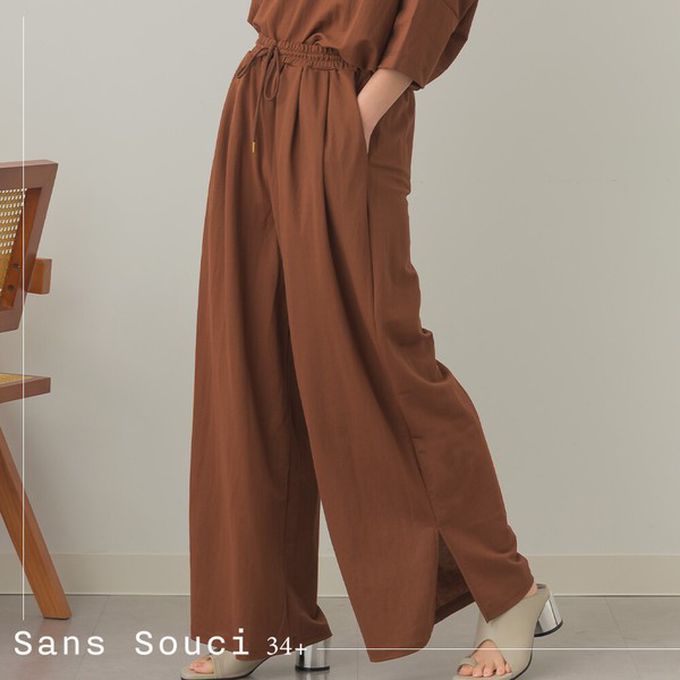 日本 Sans Souci 34+ - 接觸涼感 腰抽繩下擺開叉休閒寬褲-黑