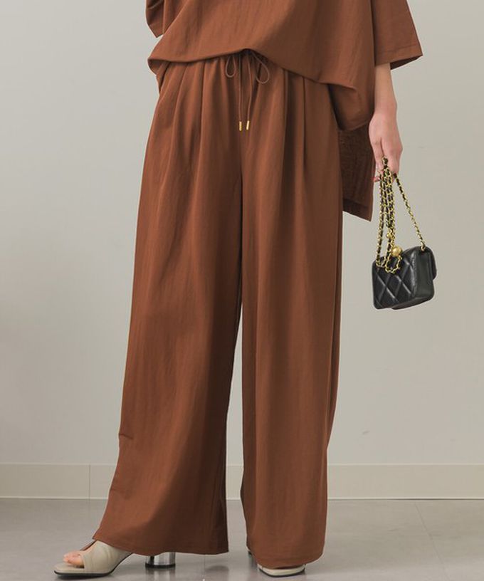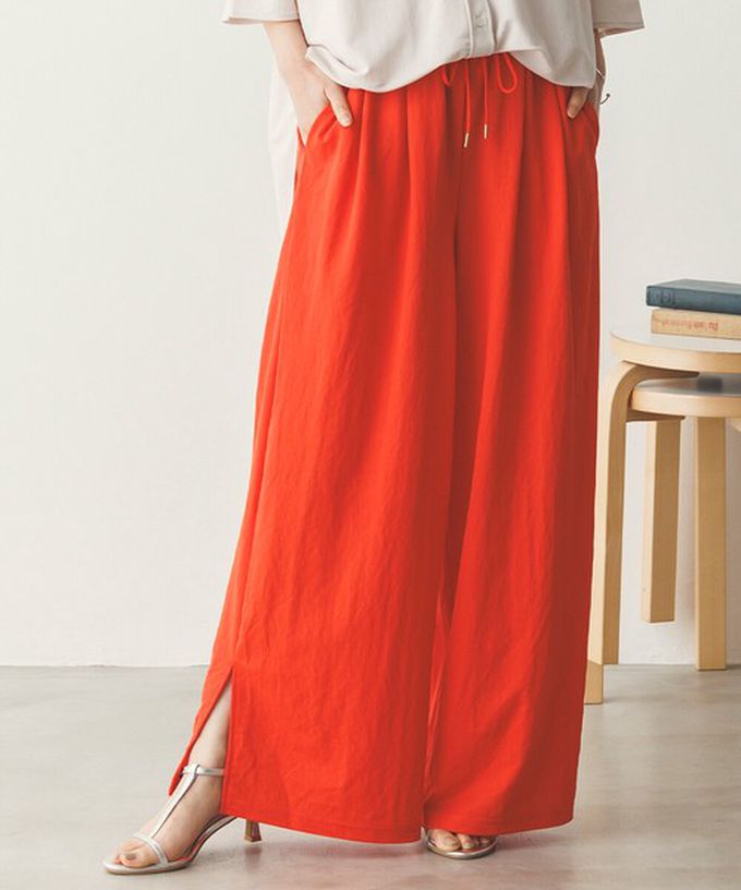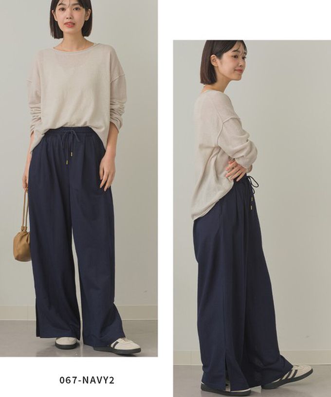 • 品名:接觸涼感 腰抽繩下擺開叉休閒寬褲