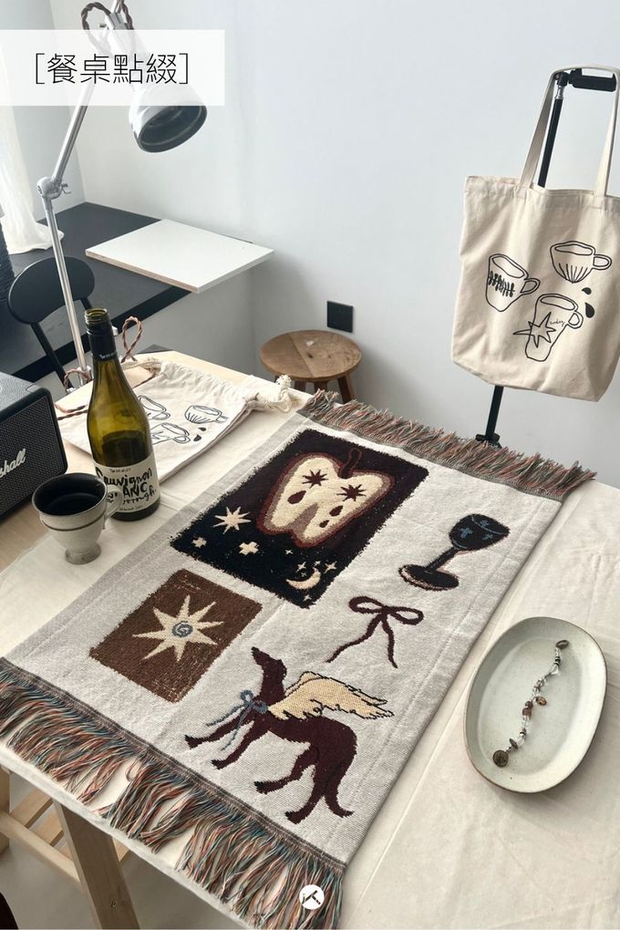 藝術編織掛毯地毯-哭泣蘋果與小狗
