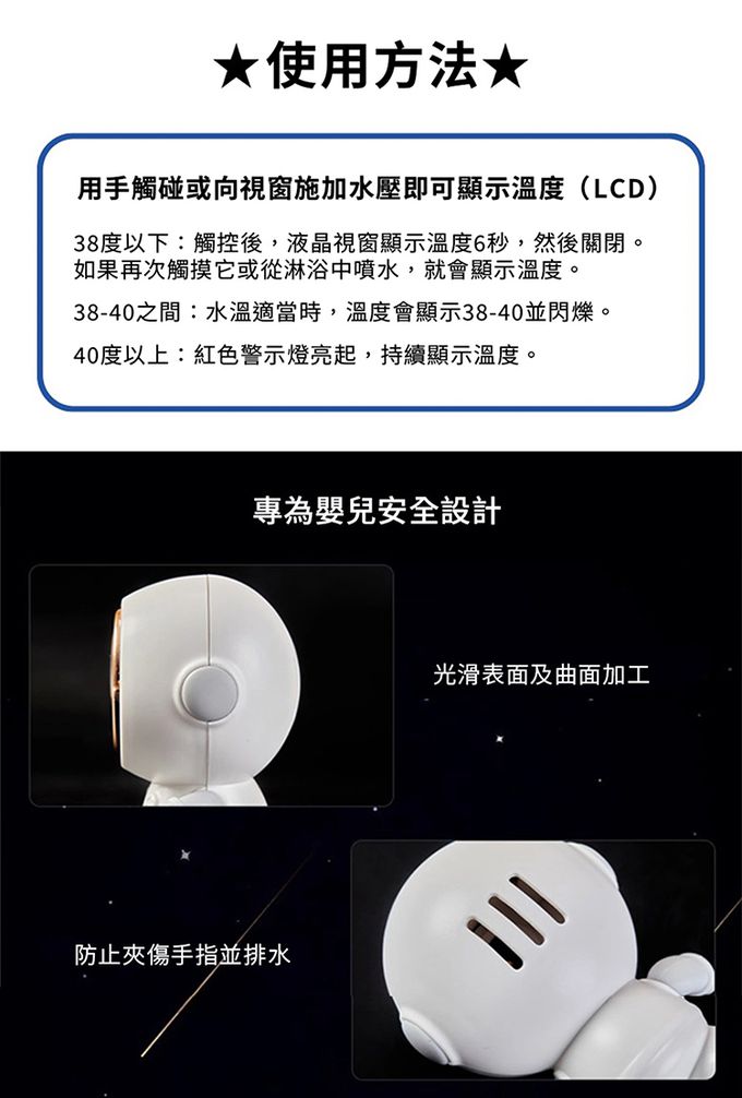 品名:液晶溫度計太空人+軟膠洗澡玩具x2+水中搖搖洗澡小魚