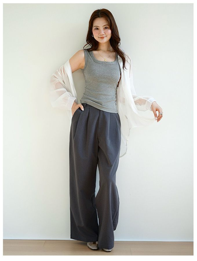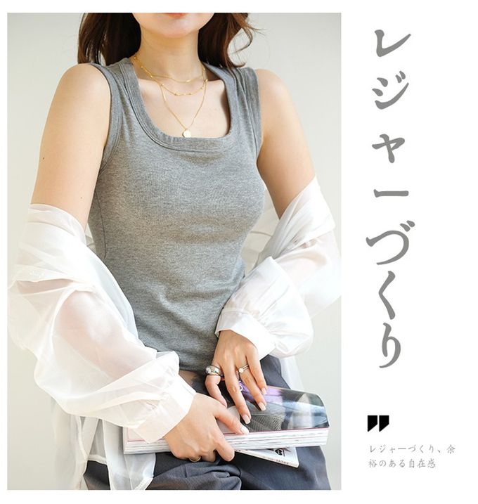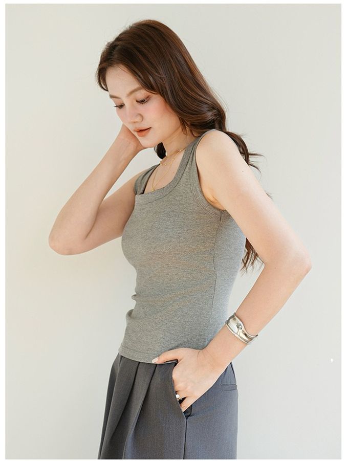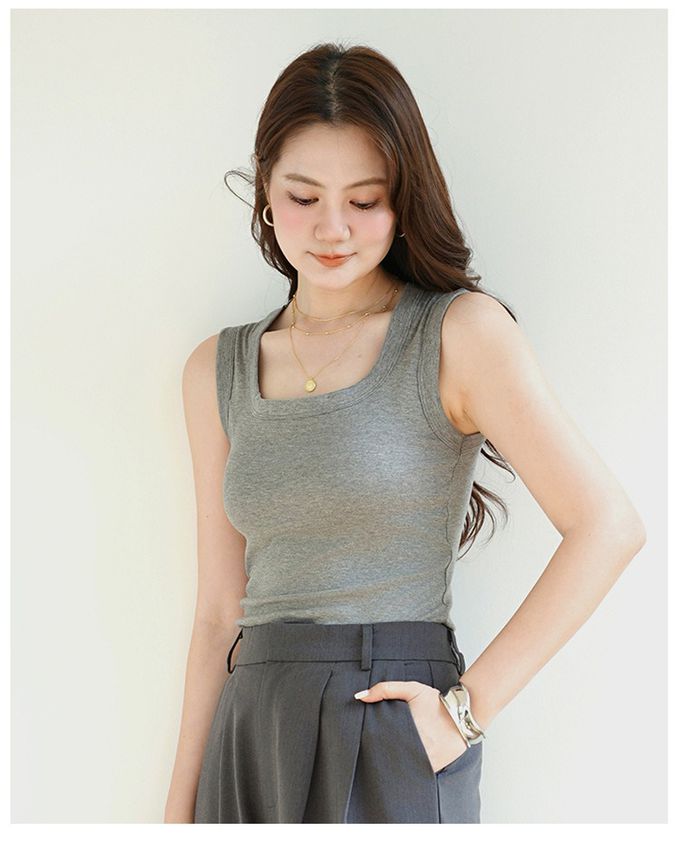 Yukié - 親膚莫代爾彈性方領Bra背心-灰