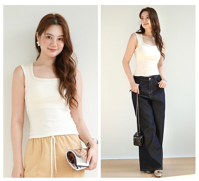 Yukié - 親膚莫代爾彈性方領Bra背心-米