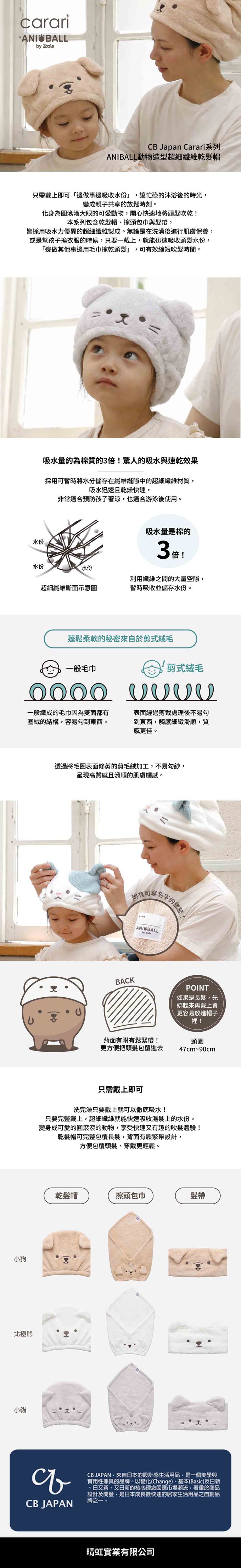 • 品名:Carari系列 ANIBALL動物造型超細纖維乾髮帽
