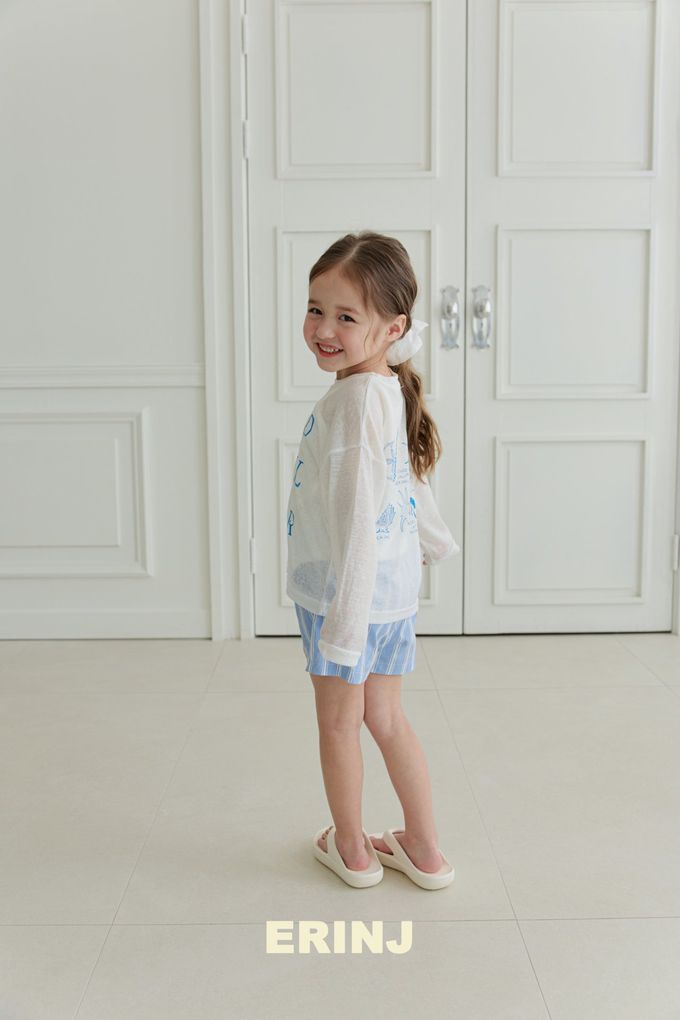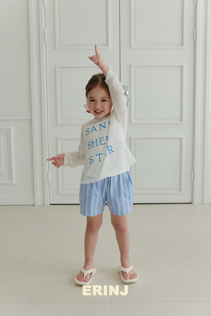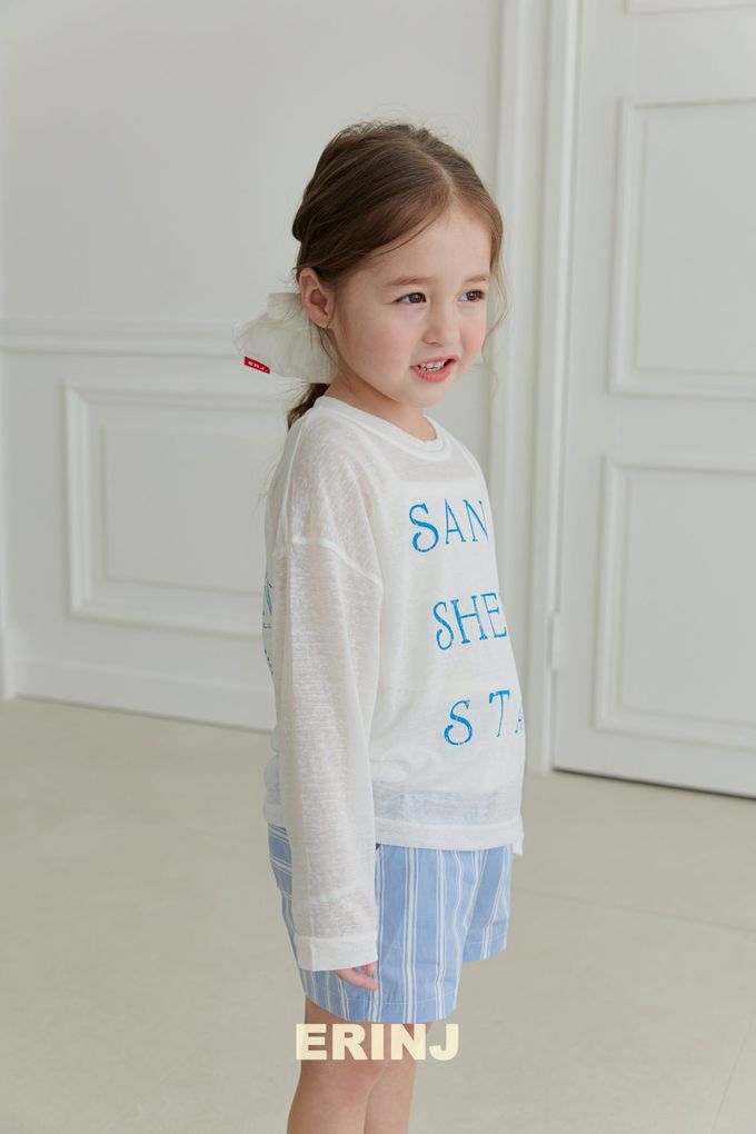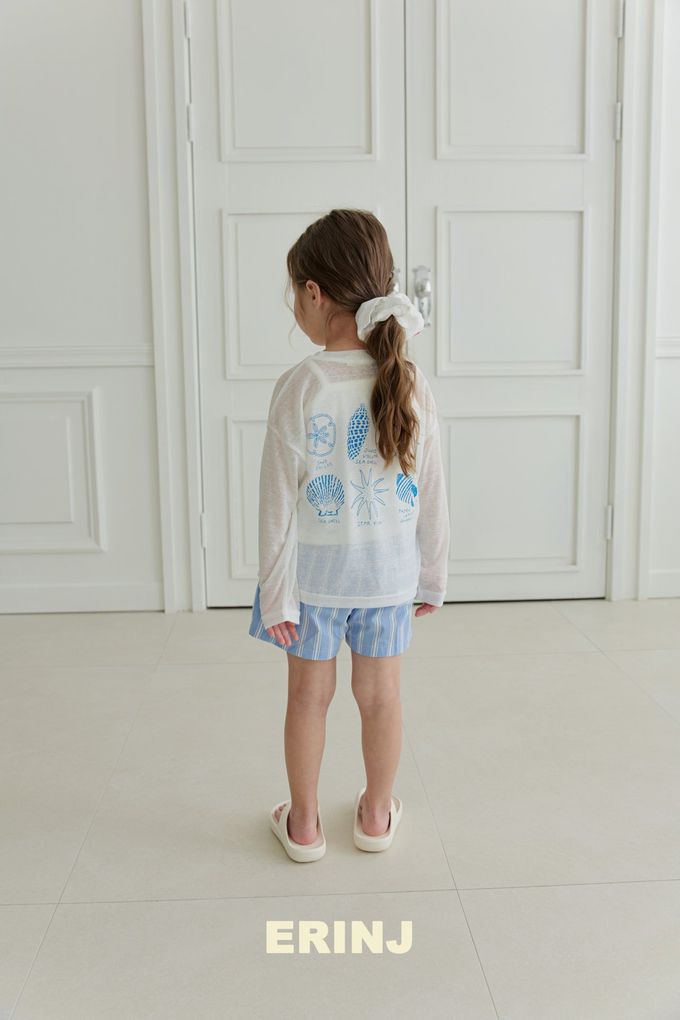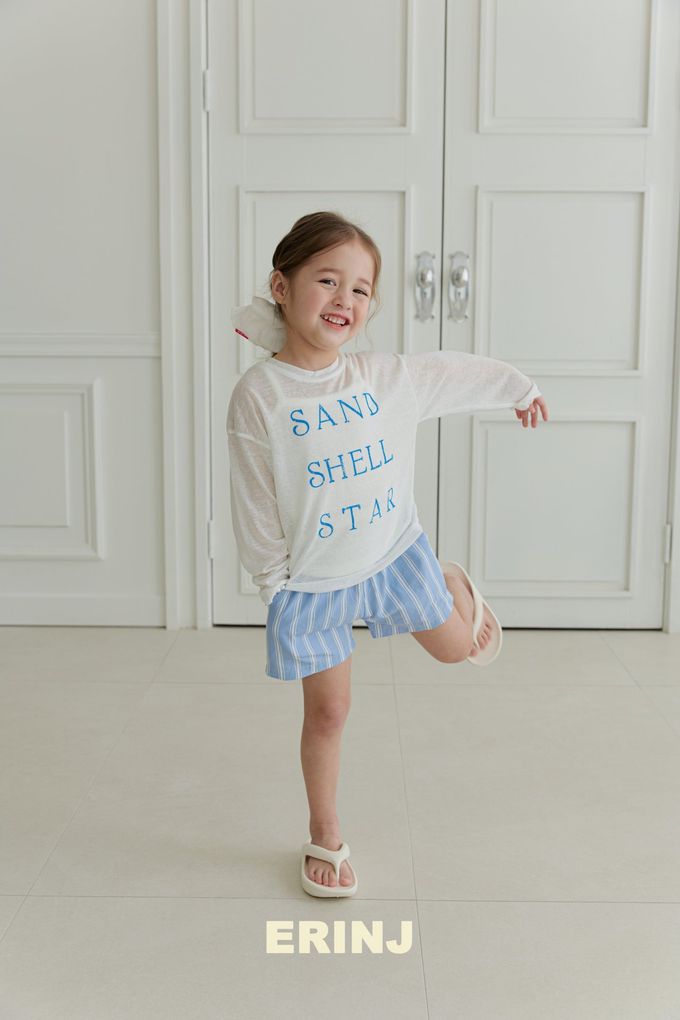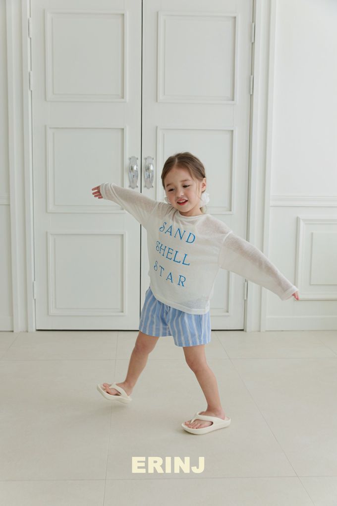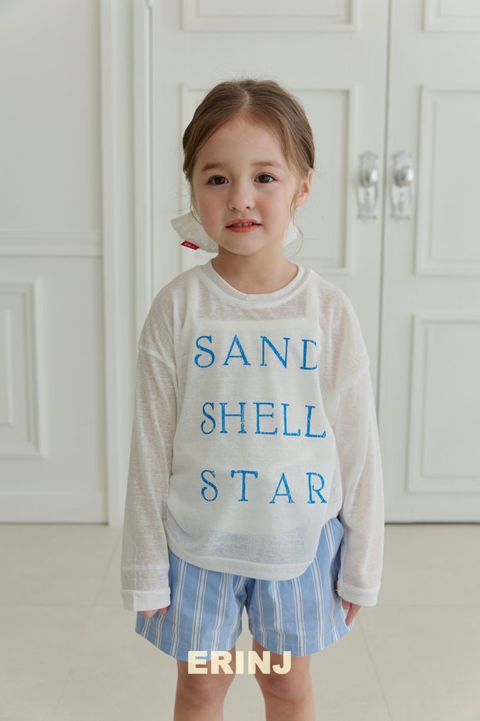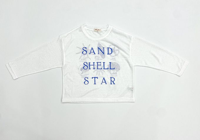 韓國南大門童裝 - ERINJ 夏日透膚感長袖上衣-字母X貝殼-白
