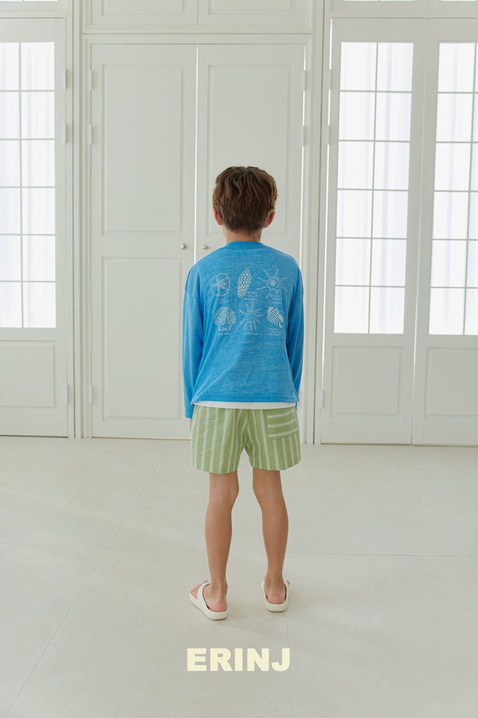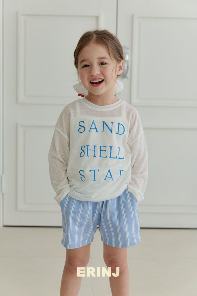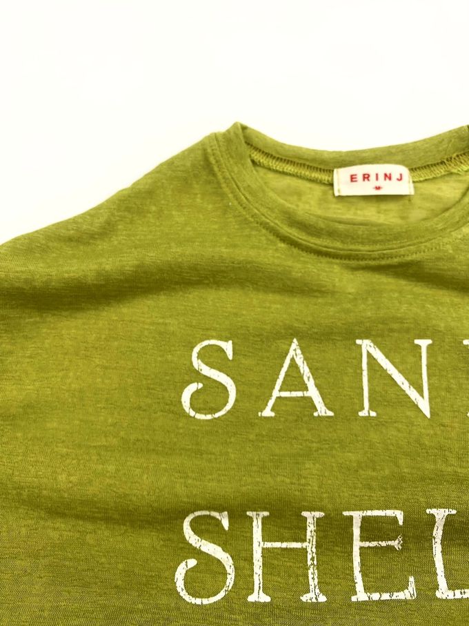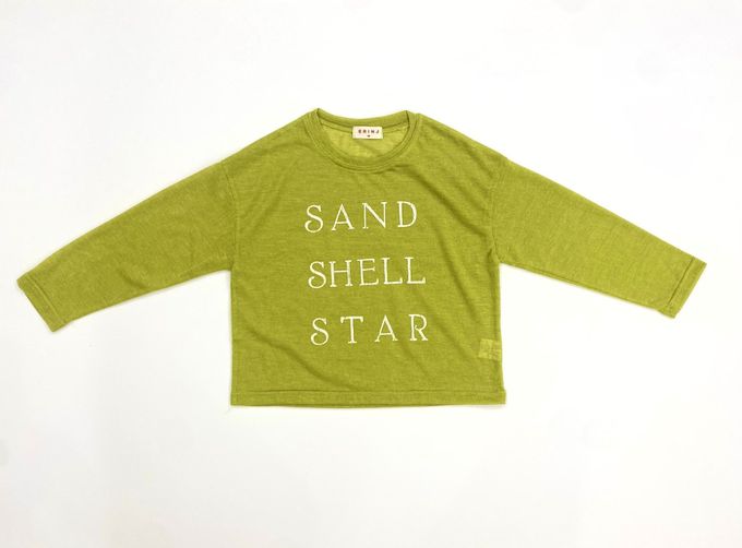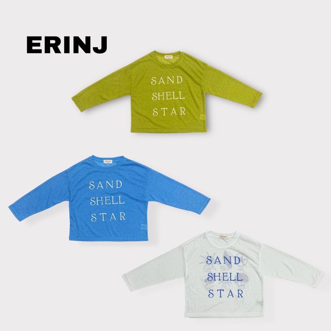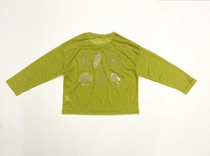 韓國南大門童裝 - ERINJ 夏日透膚感長袖上衣-字母X貝殼-橄欖綠