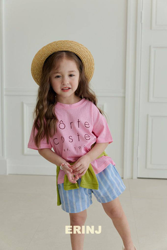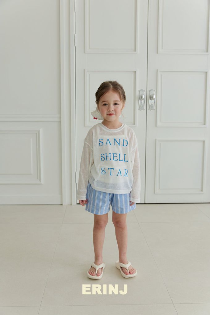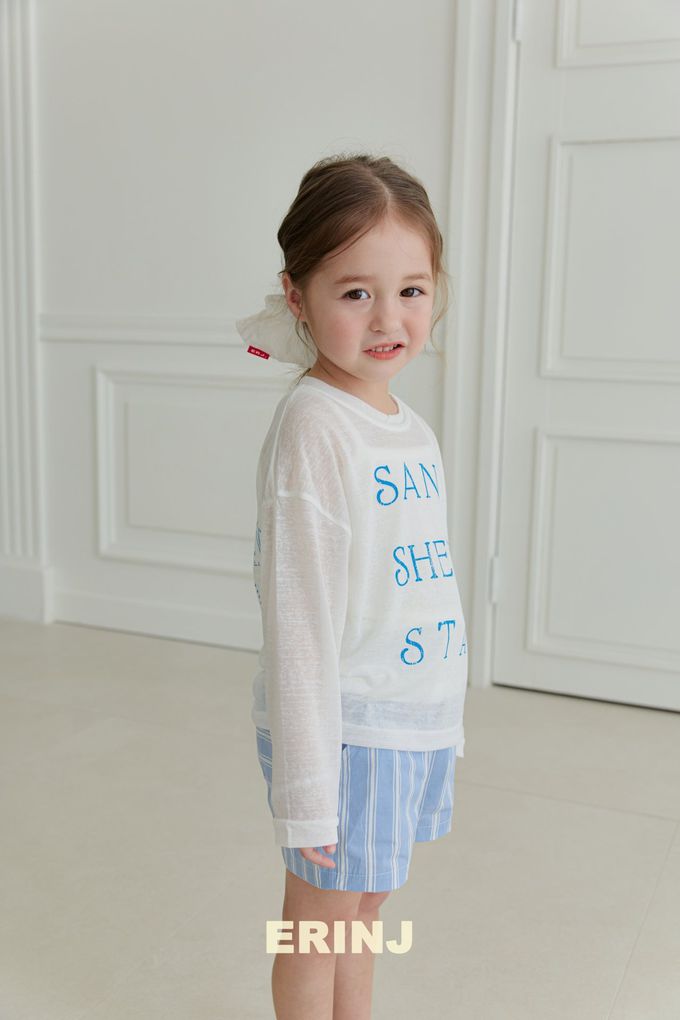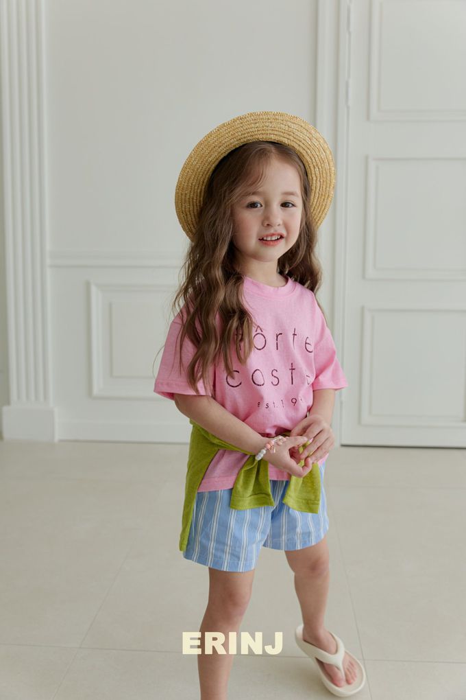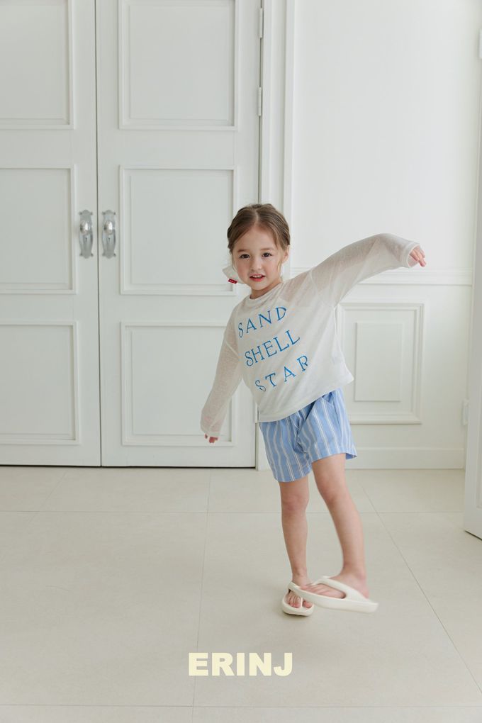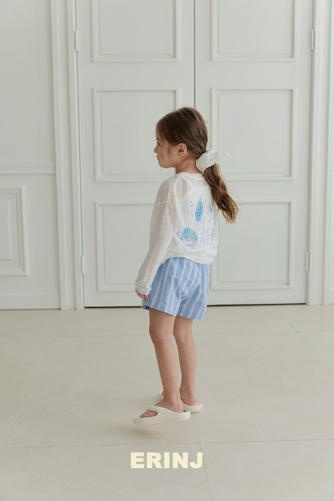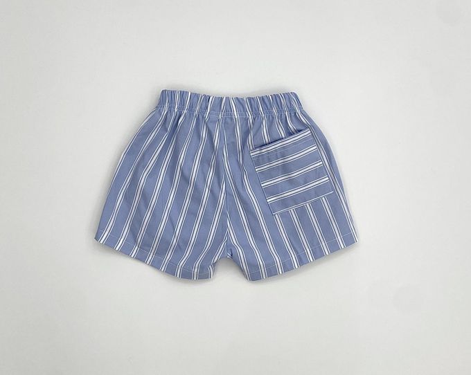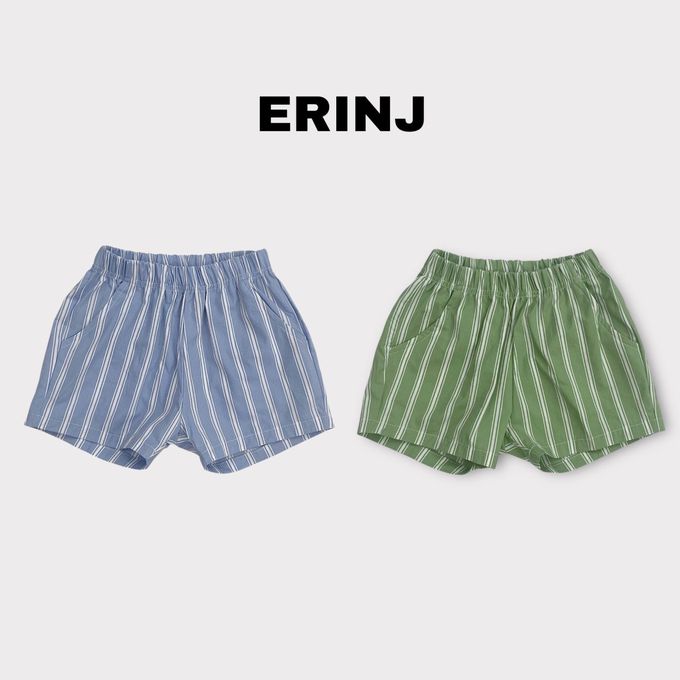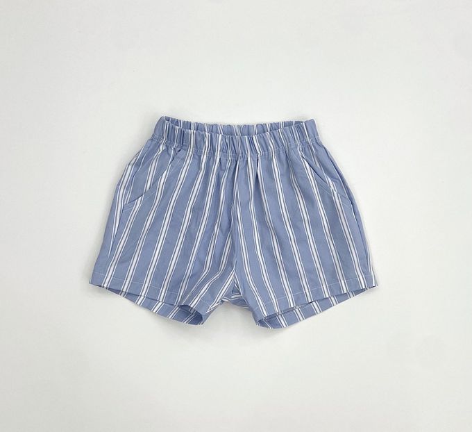 韓國南大門童裝 - ERINJ 鬆緊腰清爽直紋純棉短褲-藍