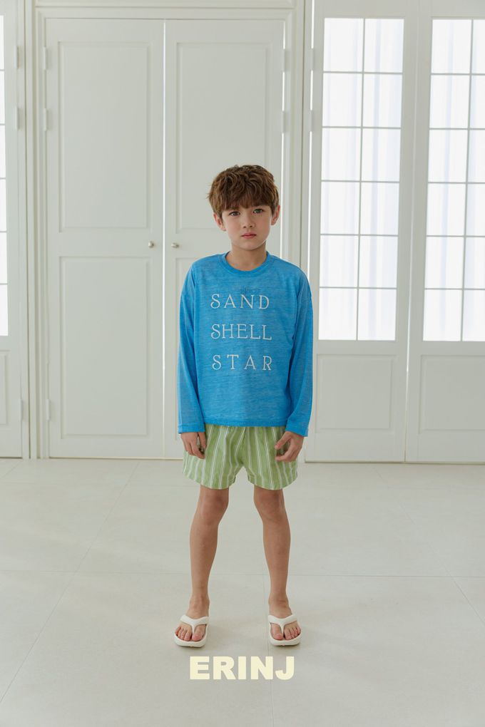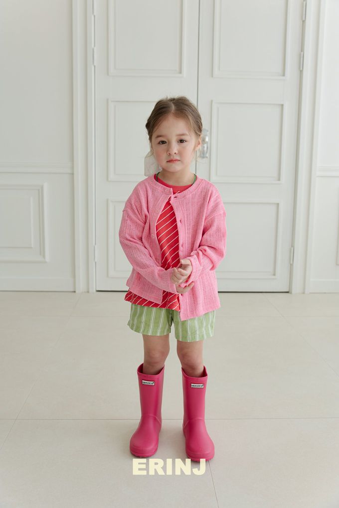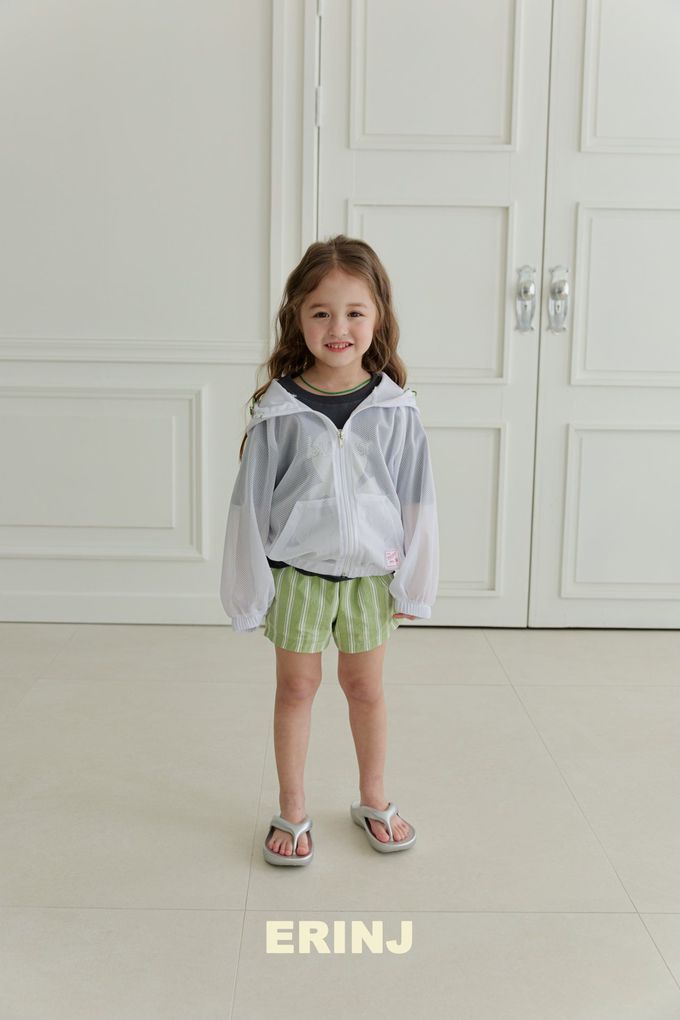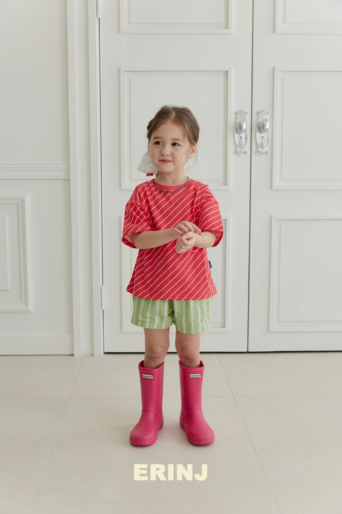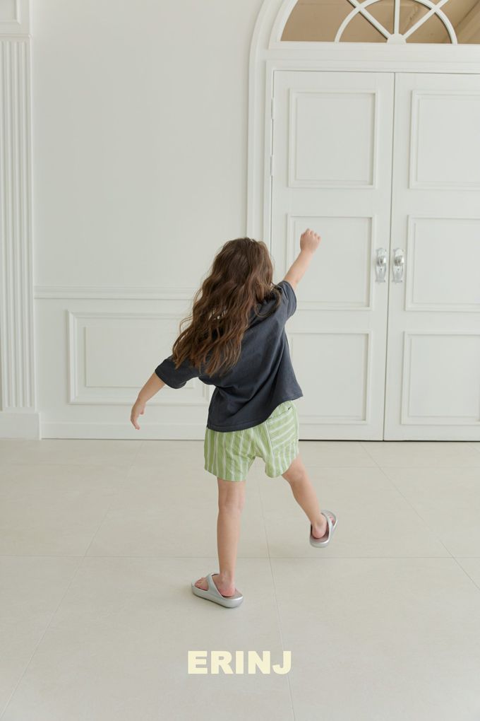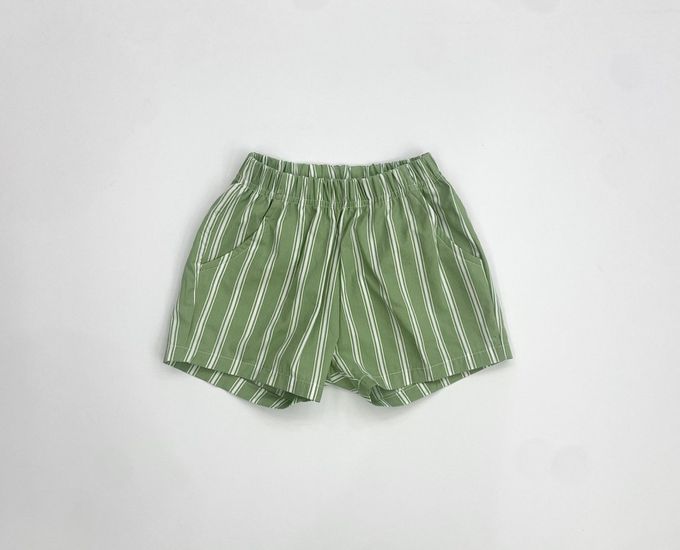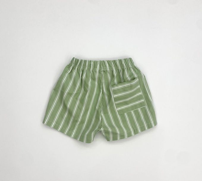 韓國南大門童裝 - ERINJ 鬆緊腰清爽直紋純棉短褲-綠