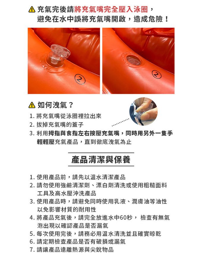 4.使用此產品時請先將產品充氣,並確認無漏氣情況