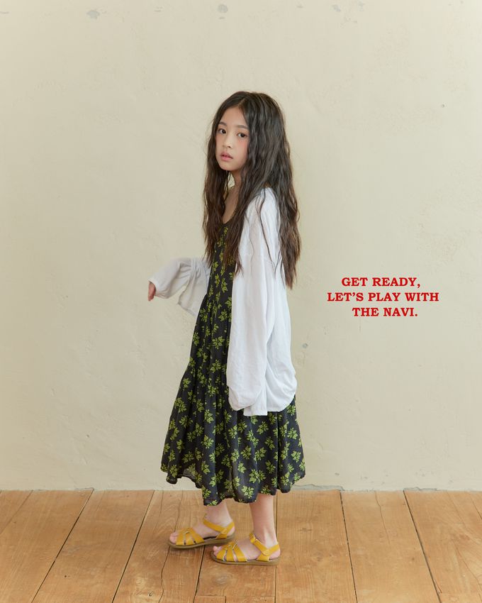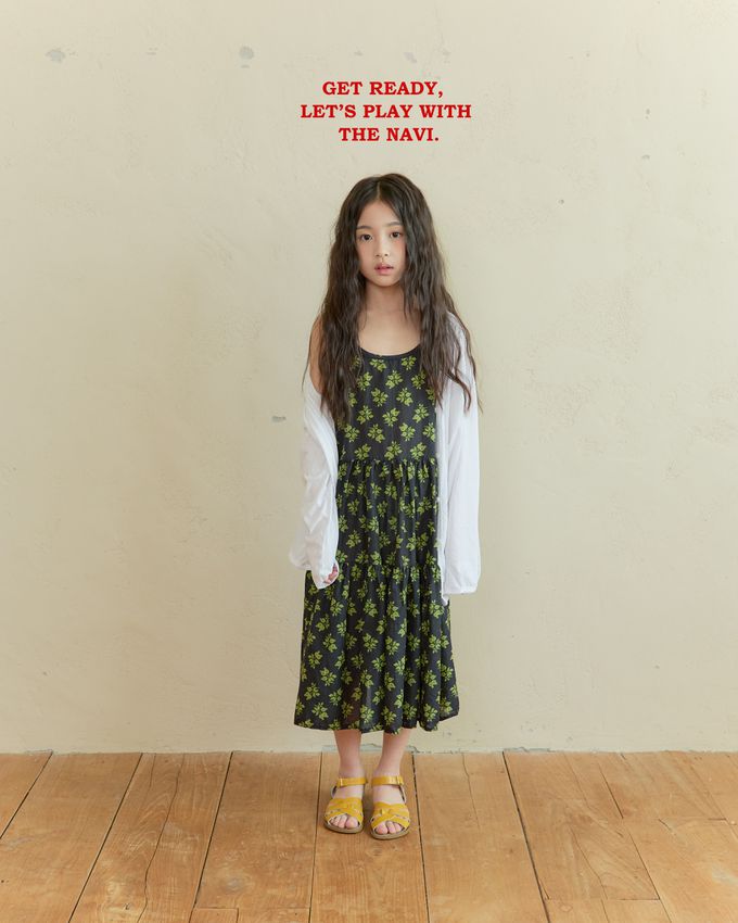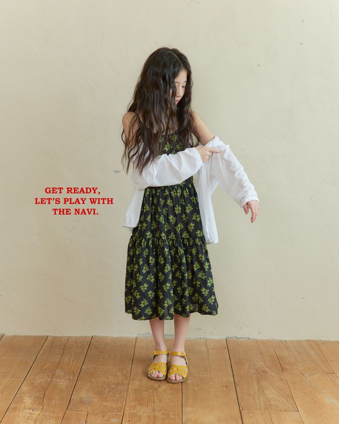 韓國南大門童裝 - NAVi 古典花漾純棉細肩蛋糕裙洋裝-黑