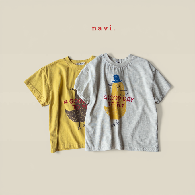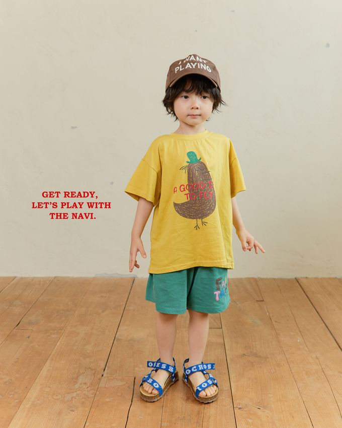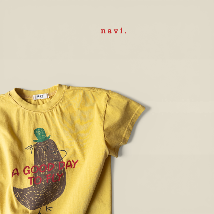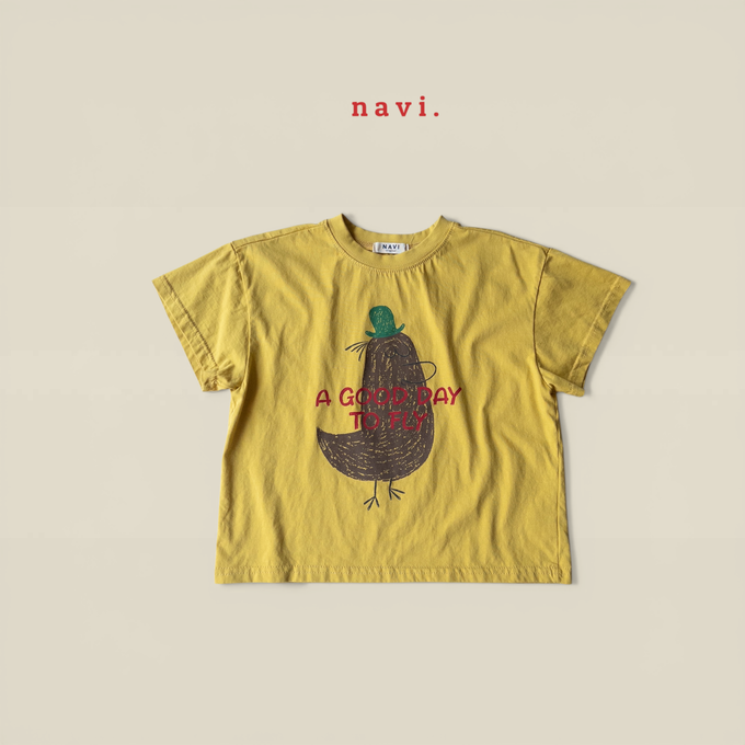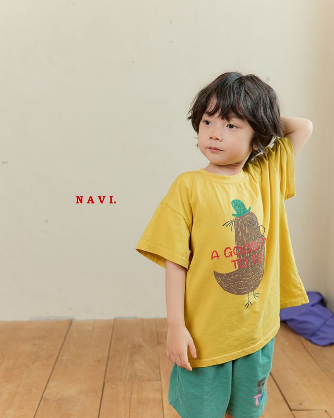 韓國南大門童裝 - NAVi 紳士塗鴉小鳥純棉長版落肩袖上衣-黃