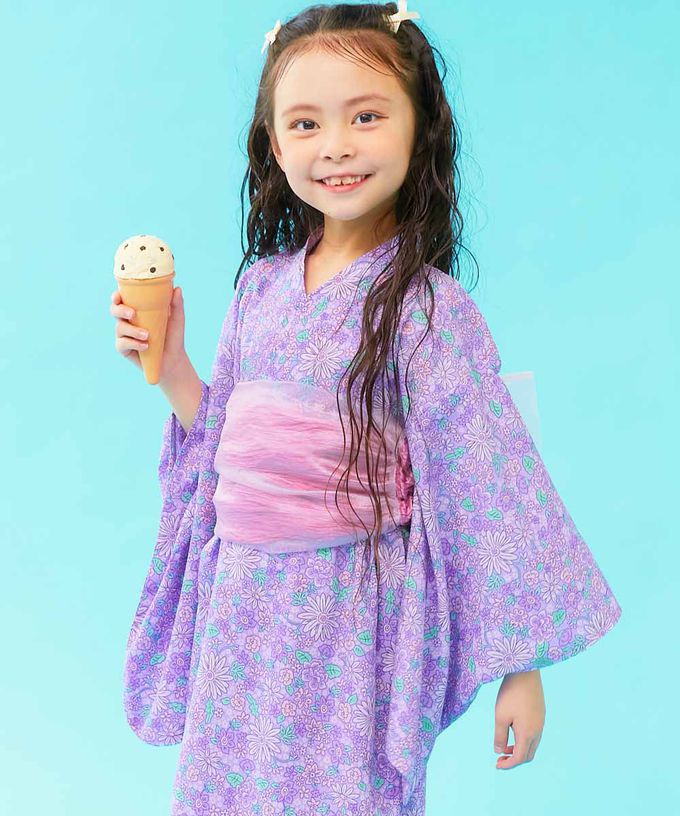 日本 devirock - 純棉方便穿套頭式夏日夢幻浴衣(2件組)-繁花錦簇-粉紅