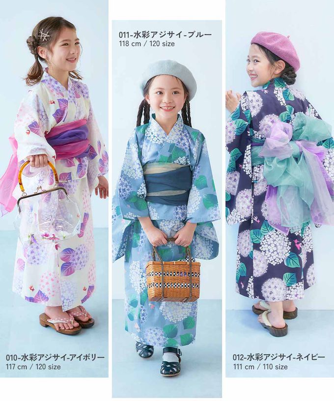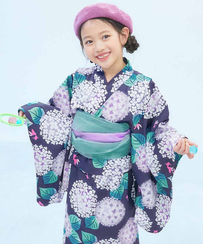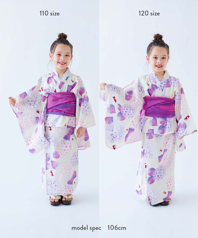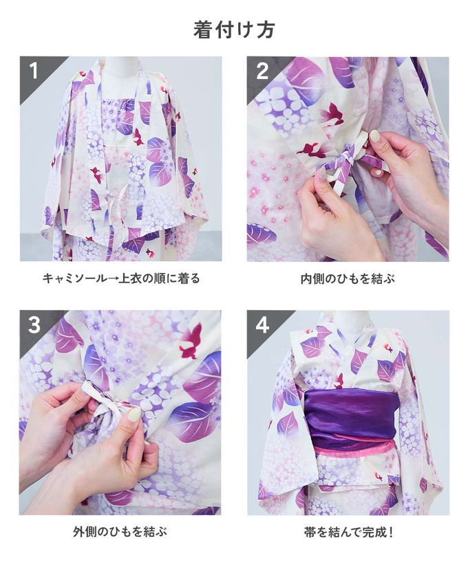 日本 devirock - 純棉 2way穿搭華麗浴衣洋裝(4件組)-粉彩繡球花-紫白