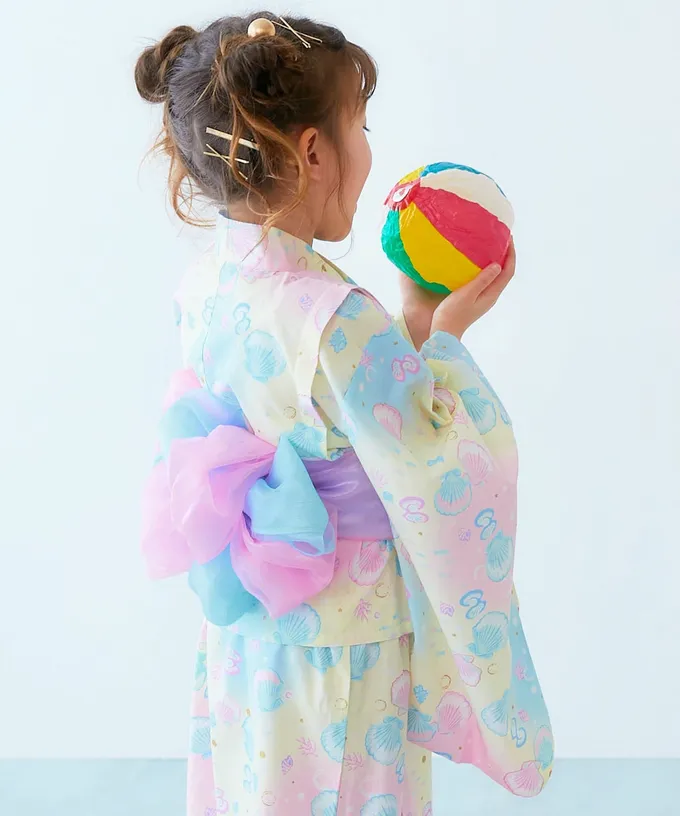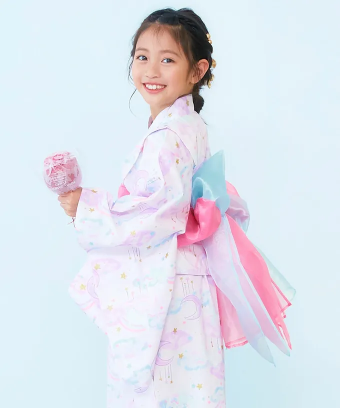日本 devirock - 純棉 2way穿搭華麗浴衣洋裝(4件組)-彩虹獨角獸-紫丁香