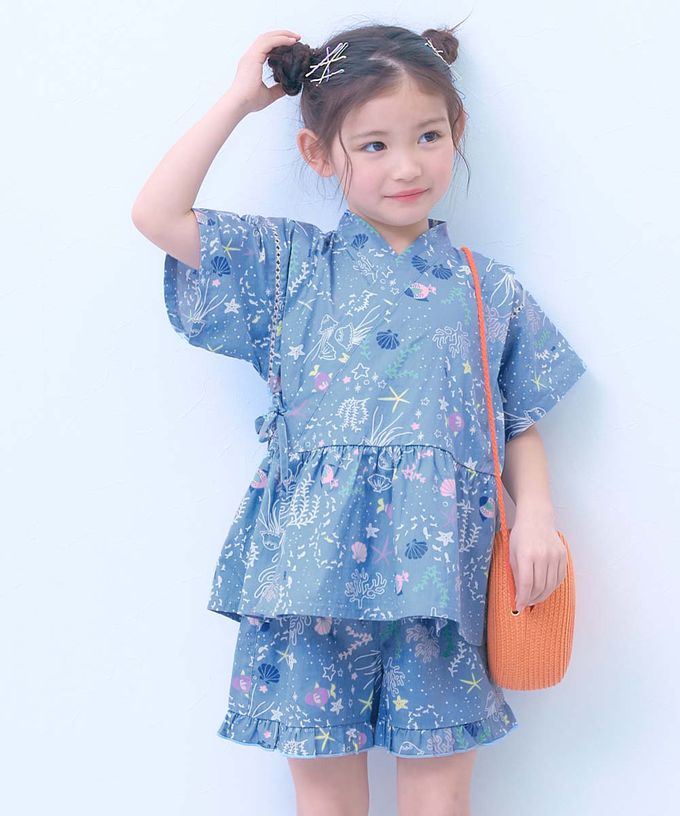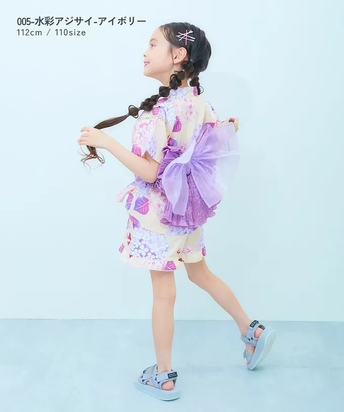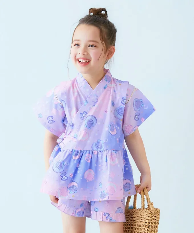 • 品名:100%棉 可愛荷葉甚平套裝