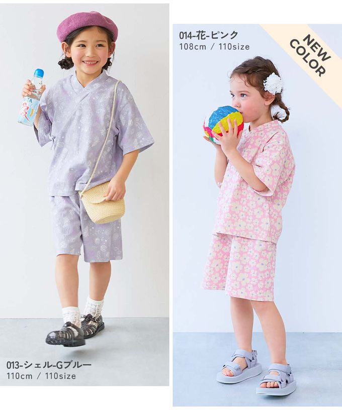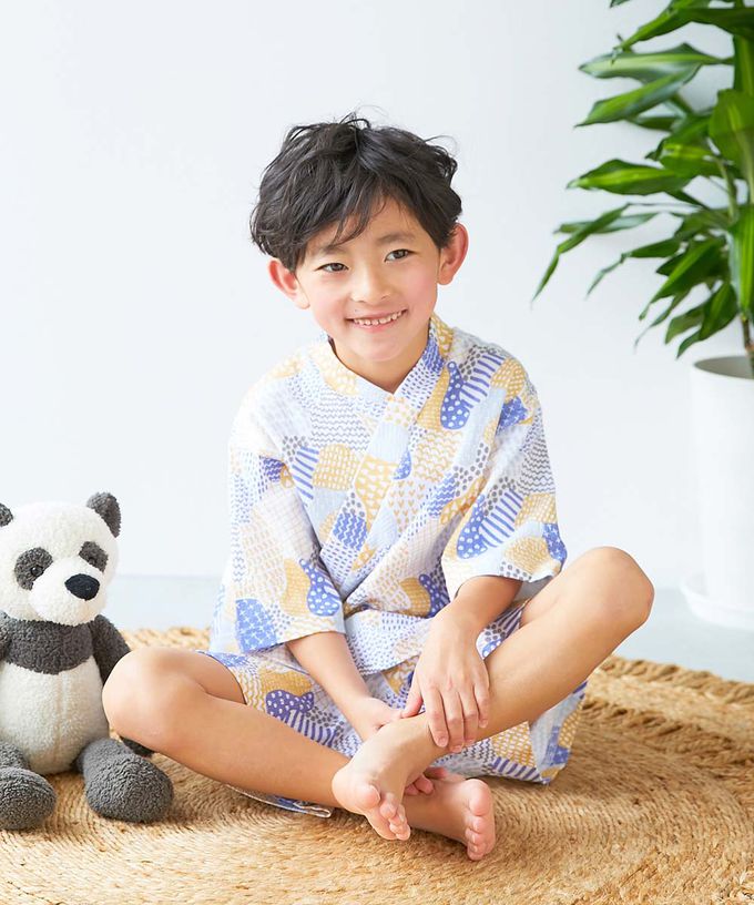 日本 devirock - 夏日風情涼爽紋理甚平套裝-幾何點點-綠灰