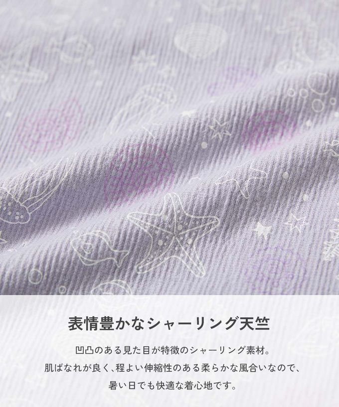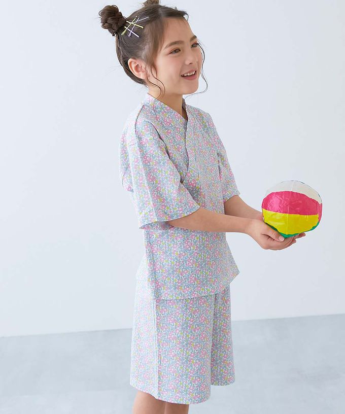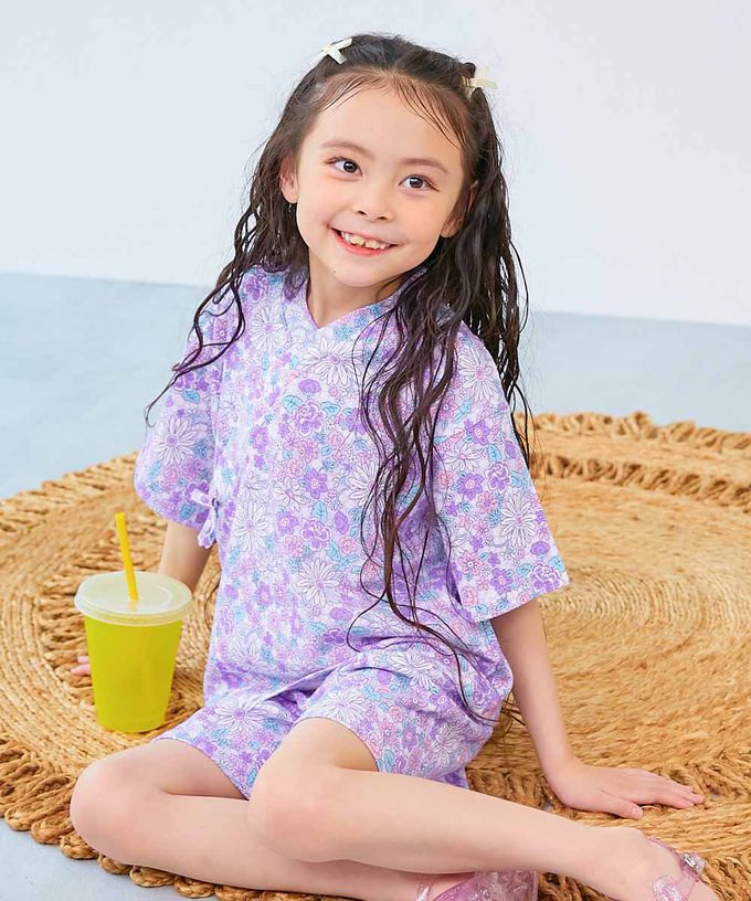 日本 devirock - 夏日風情涼爽紋理甚平套裝-普普花朵-紫
