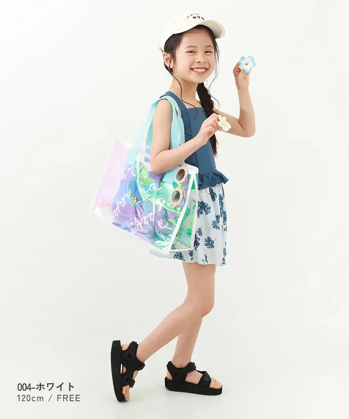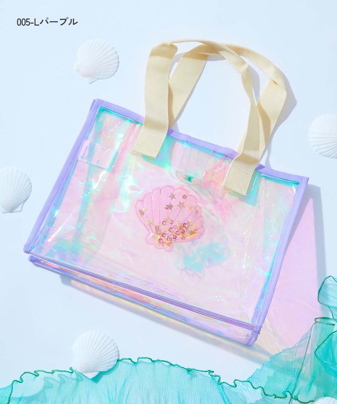 日本 devirock - 獨角獸色系閃亮PVC游泳/玩水包-蝴蝶結-水藍