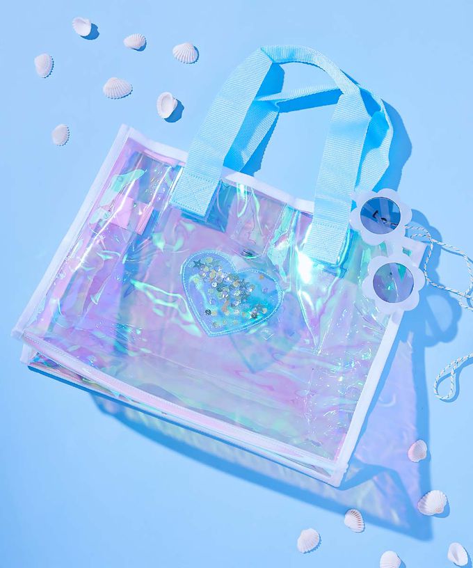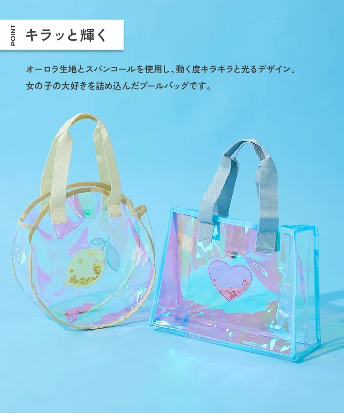 日本 devirock - 獨角獸色系閃亮PVC游泳/玩水包-愛心-白x水藍