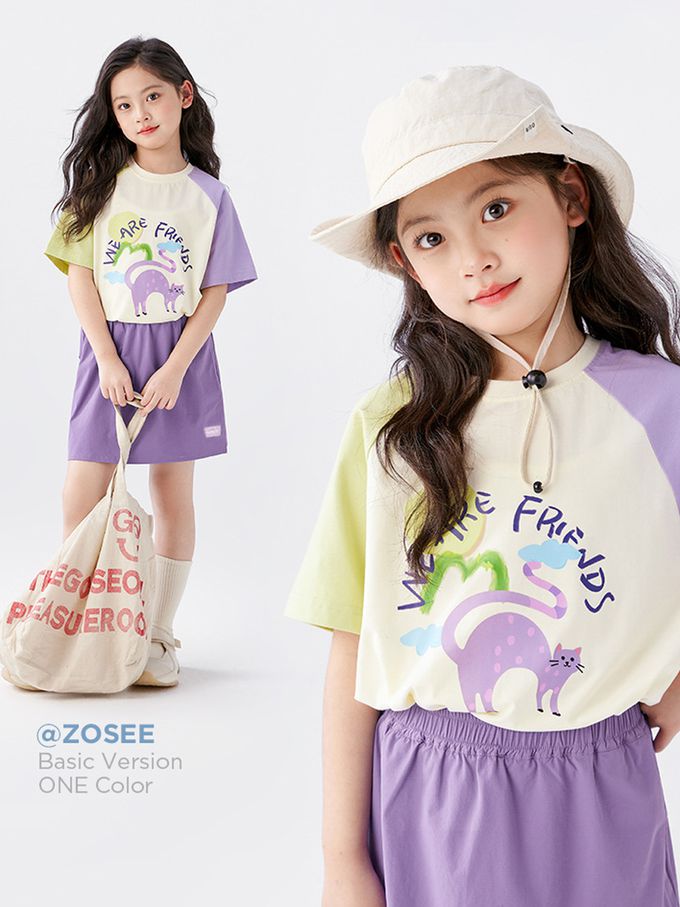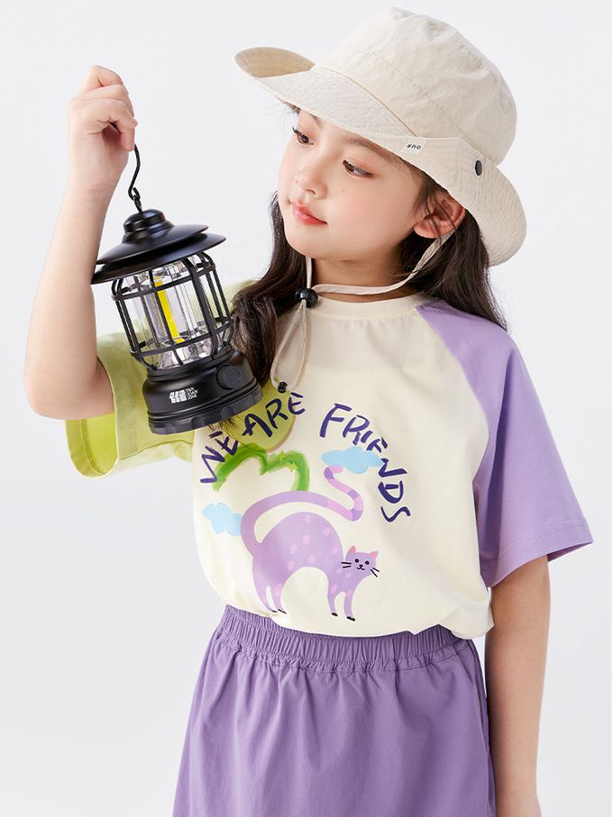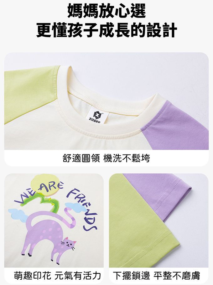 -3℃瞬間涼感短袖T-卡通插畫-撞色米白