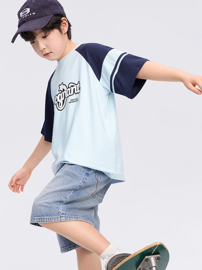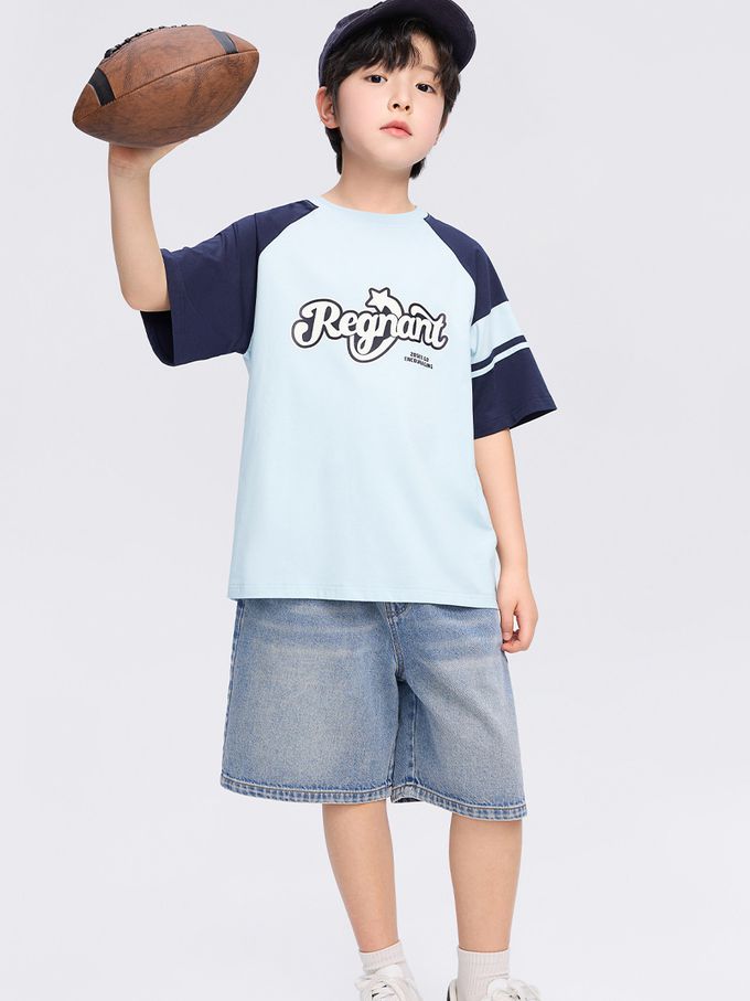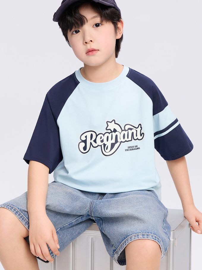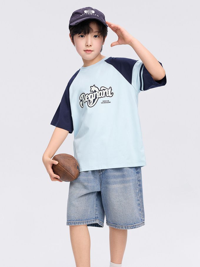 -3℃瞬間涼感短袖T-美式休閒印花-拼色藍