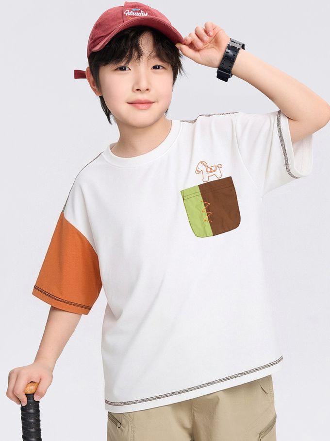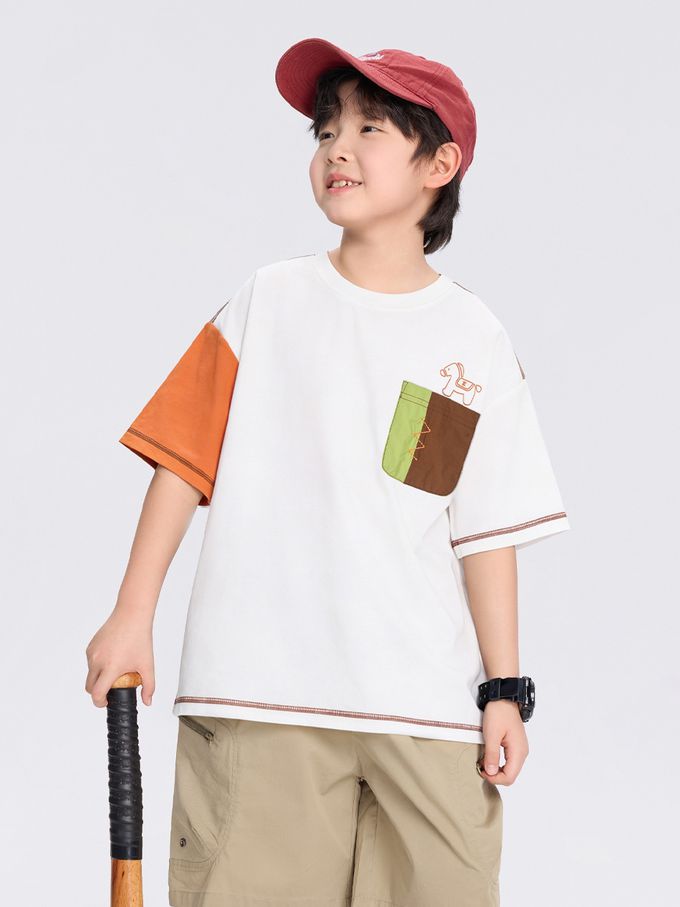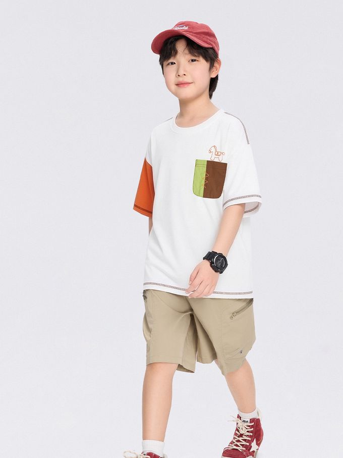 -3℃瞬間涼感短袖T-撞色口袋-白拼橘