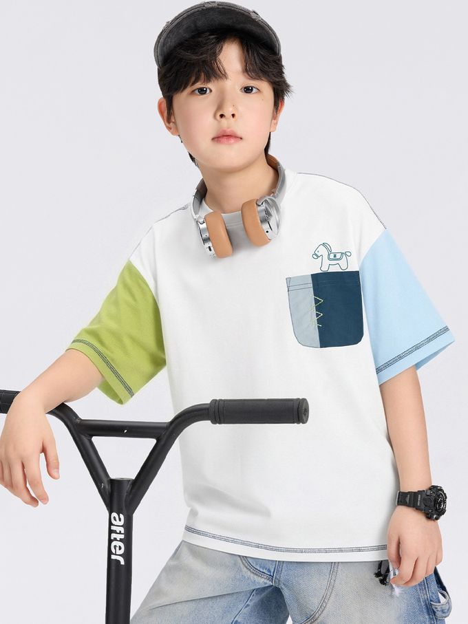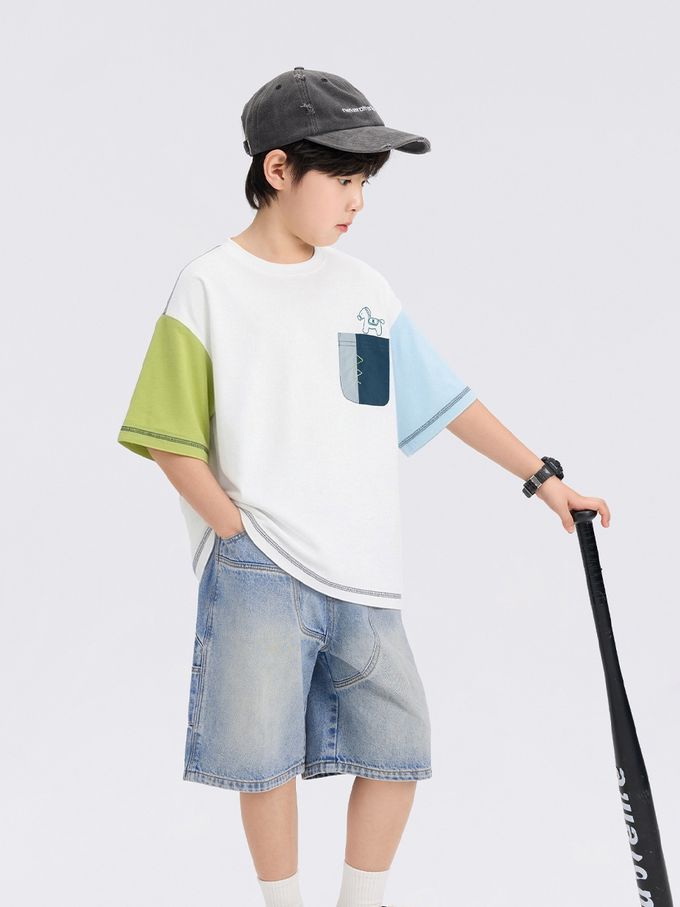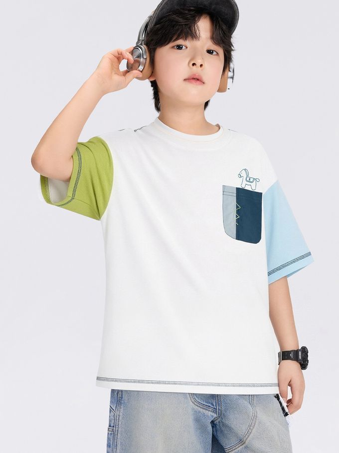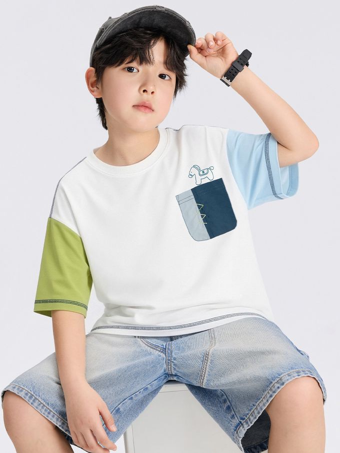 -3℃瞬間涼感短袖T-撞色口袋-藍拼綠