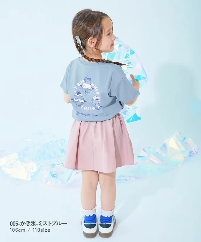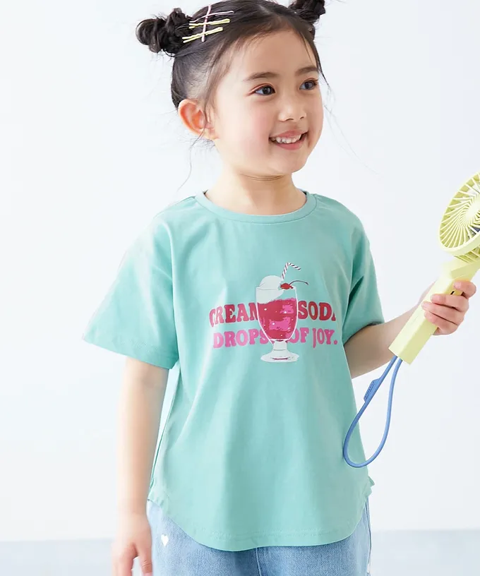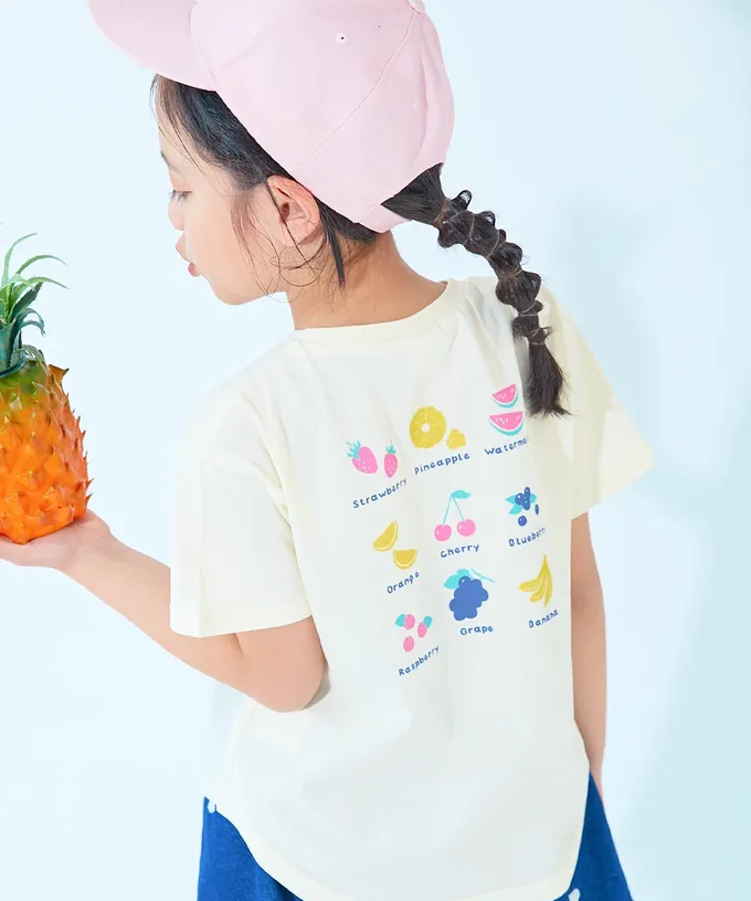日本 devirock - 吸汗速乾涼感 女孩印花短袖上衣-鮮艷水果-青翠綠