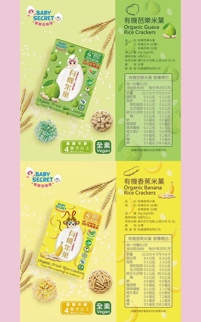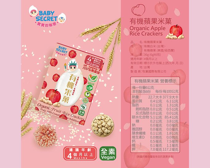 注意事項:【商品規格】 《學習水杯組》 適用年齡:5個月以上 容量:〈訓練直飲杯〉100ml;〈入口式直飲杯〉200ml 材質/耐溫:〈訓練直飲杯〉杯子-聚丙烯-20℃~140℃,蓋子-矽膠-20℃~140℃;〈入口式直飲杯〉杯體-聚丙烯-20℃~110℃,頂蓋、蓋子-聚丙烯-20℃~120℃,墊圈-矽膠-20℃~140℃ 產地:中國 食品業者登錄字號:A-190435744-00000-4 《米菓盒裝》 成份:台灣-有機白米、有機香蕉、有機南瓜、有機芭樂、有機胡蘿蔔、有機菠菜、有機地瓜、有機鳳梨、有機番茄;美國、紐西蘭-有機蘋果;加拿大-有機藍莓 淨重:36g(6gx6包) 適用年齡:4個月以上 保存期限:15個月(係指未經開封且保存於正常狀態下) 產地:台灣 經營者名稱:牧菓國際有限公司 地址:新北市樹林區武林街12-2號3樓 電話:886-2-26867711 驗證機構名稱:慈心有機驗證有限公司 驗證證書字號:1-009-210235 食品業者登錄字號:F-191082037-00000-3 投保產品責任險字號:國泰產物保險:1516字第11PD03281號 【注意事項】 《學習水杯組》 ● 使用前,請務必閱讀附屬說明書,請正確使用。 ● 為孩子的安全和健康着想,要在成年人指導下使用。 ● 長久吮吸液體會腐損牙齒。 ● 餵食前需要注意食物溫度。 ● 飲管及水杯的所有組件,不使用時,放置在嬰孩不能接觸的地方。 ● 請勿將本品放置在火邊附近。 ● 請勿使用研磨粉或者用刷子等硬物擦洗,以免留下劃痕。 〈學習訓練直飲杯-微波爐使用注意事項〉 ● 使用時請遵守產品標示、使用注意事項、微波爐的使用說明書。 ● 請勿使用直火、烤箱或烤爐加熱。 ● 若要加熱的飲料量較少,請縮短加熱時間。 〈入口式直飲水杯-使用注意事項〉 不滲漏不包含使用方式錯誤、氣閥破損或經年劣化等情況;此外,本商品非完全密閉,在頂蓋開啟的狀態下,傾倒橫放幾分鐘或是搖晃,都可能會導致飲料渗漏;要放入包包時,為慎重起見,請放置於塑膠袋等中攜帶移動。 《米菓盒裝》 ● 真正100%無添加的有機米餅是米與蔬菓的完美結合,以天然有機食材製作,營養價值百分百。 ● 米餅表面偶有附著天然菓肉,均屬自然現象,敬請安心食用。 ● 請注意一次一片食用,待完全融化後再接著食用,過程中避免口腔乾澀,請適時補充水分,切勿讓嬰幼兒與年長者躺著食用! ● 為維持食用最佳品質,開封後請盡速食用完畢,且避免置於高溫潮濕或曝曬於陽光下之場所。