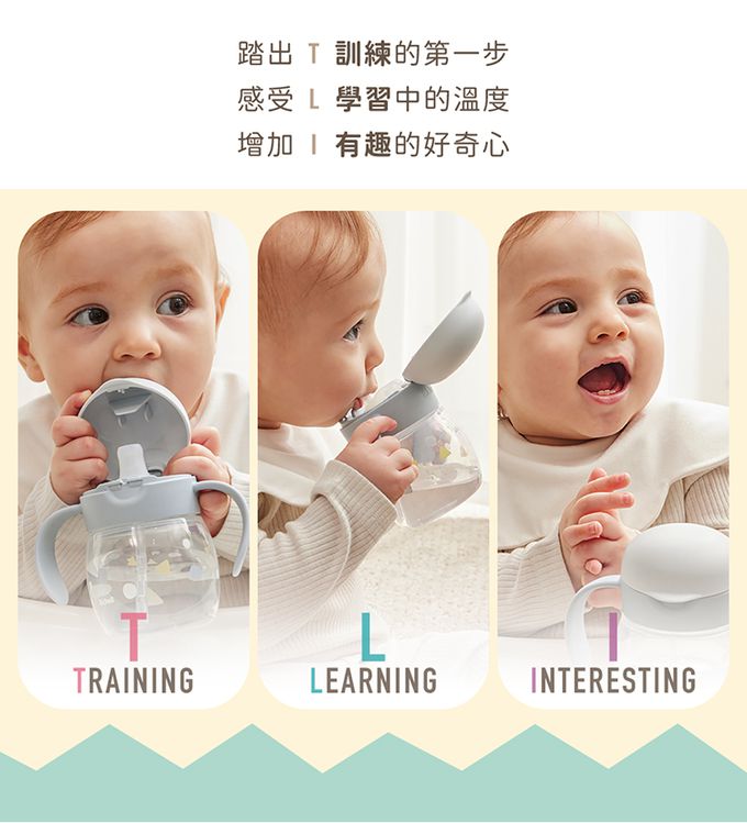 品名:T.L.I入口式直飲學習水杯組+寶寶的秘密有機米菓盒裝x隨機3