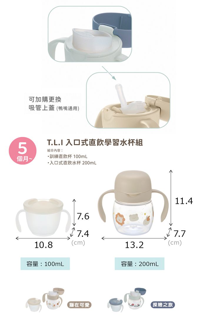 商品重(容)量:〈訓練直飲杯〉100ml;〈入口式直飲杯〉200ml