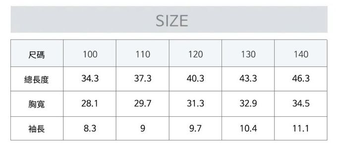 1. 尺寸表單位皆為公分(cm),實際尺寸會因布料彈性、水洗、測量起迄點等因素略有誤差。