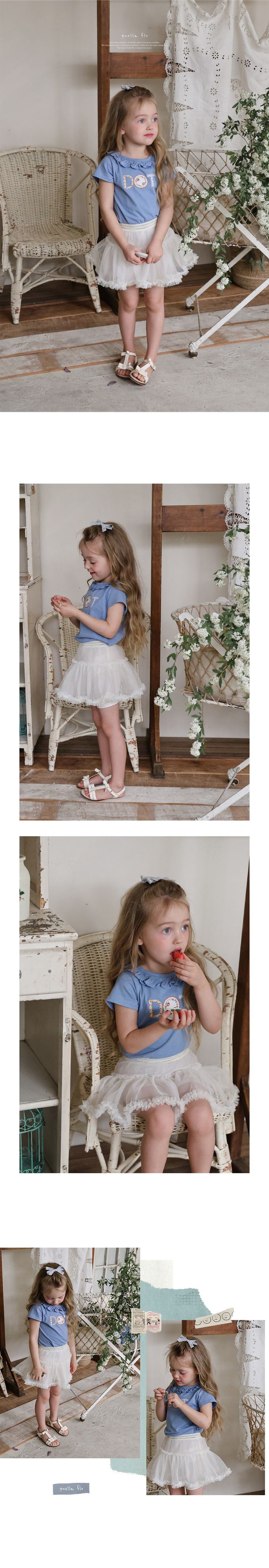 韓國南大門童裝 - Puellaflo DOT小花印荷葉領純棉短袖上衣-藍
