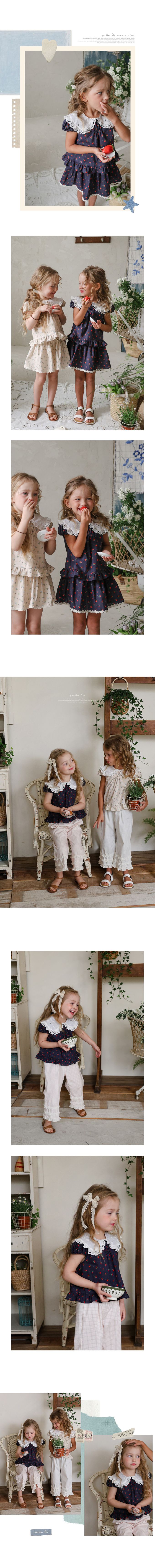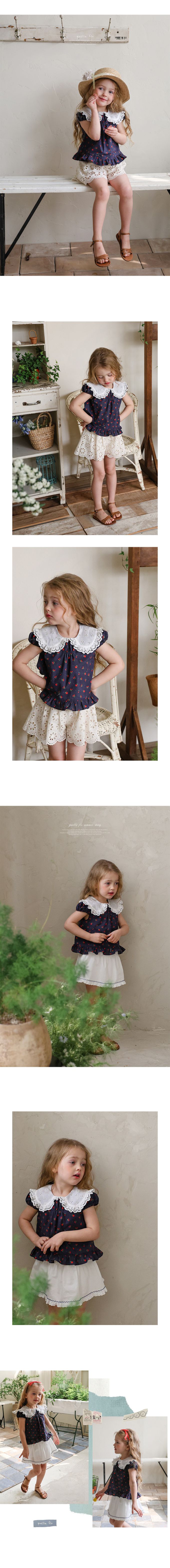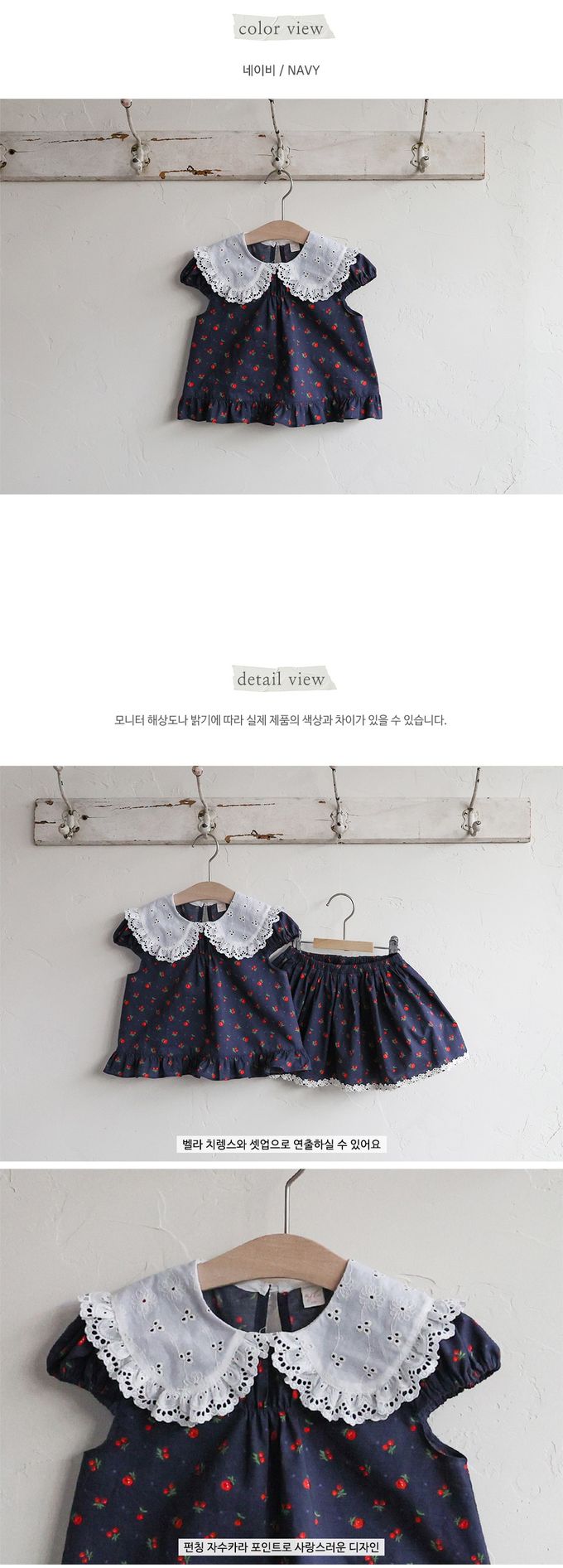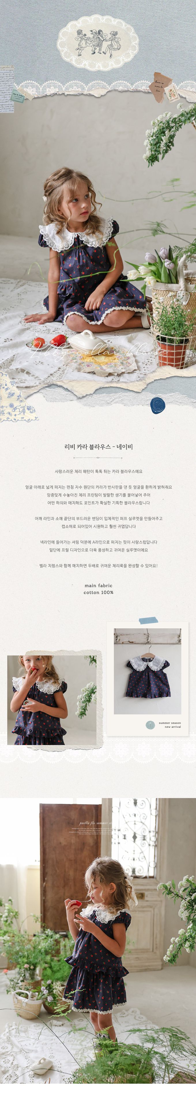 韓國南大門童裝 - Puellaflo 甜美蕾絲布翻領泡泡袖上衣-紅花-海軍藍