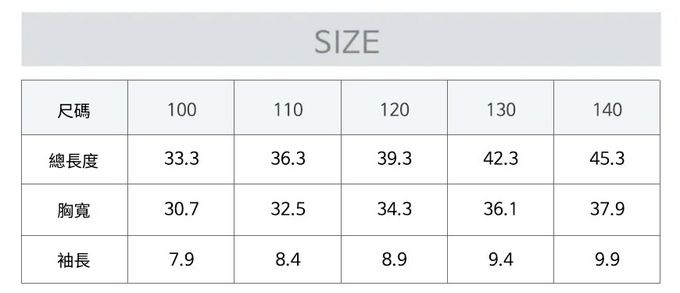 1. 尺寸表單位皆為公分(cm),實際尺寸會因布料彈性、水洗、測量起迄點等因素略有誤差。