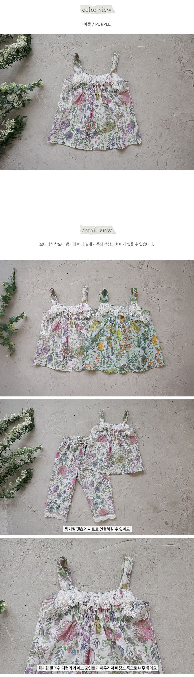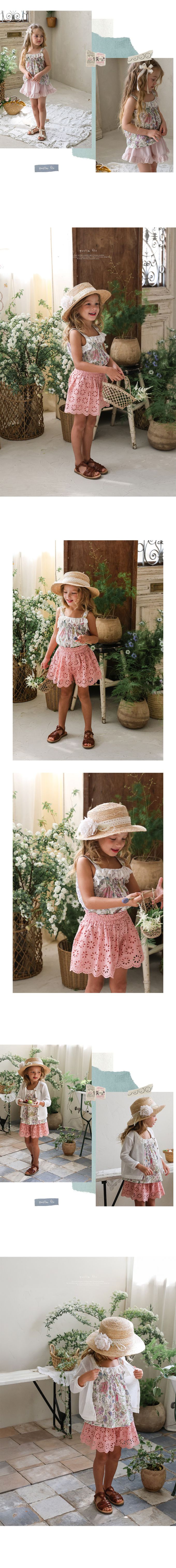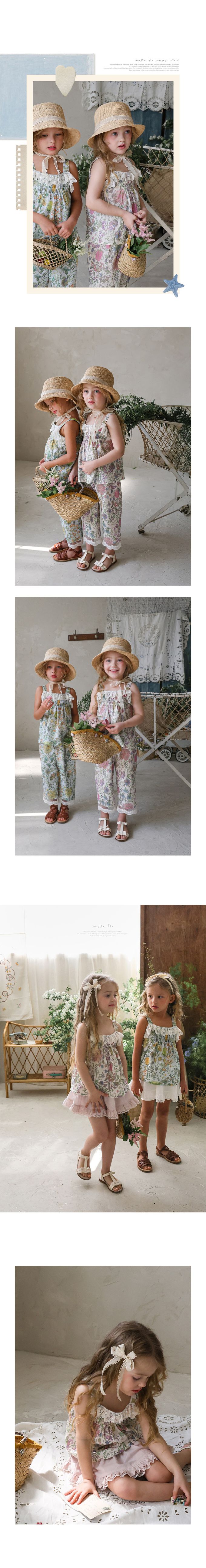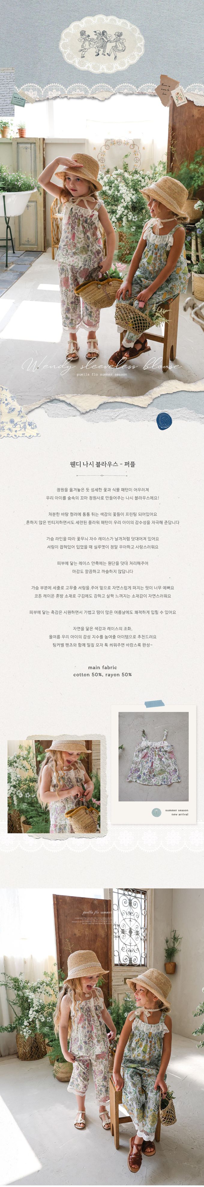 韓國南大門童裝 - Puellaflo 花園抓褶蕾絲點綴背心上衣-紫花X象牙白