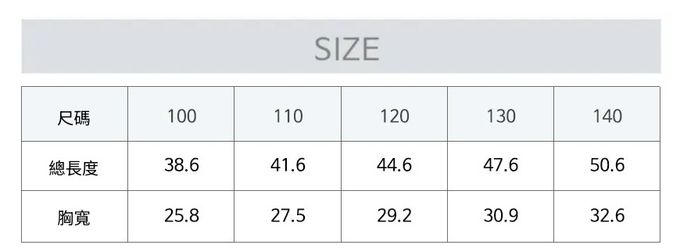 1. 尺寸表單位皆為公分(cm),實際尺寸會因布料彈性、水洗、測量起迄點等因素略有誤差。