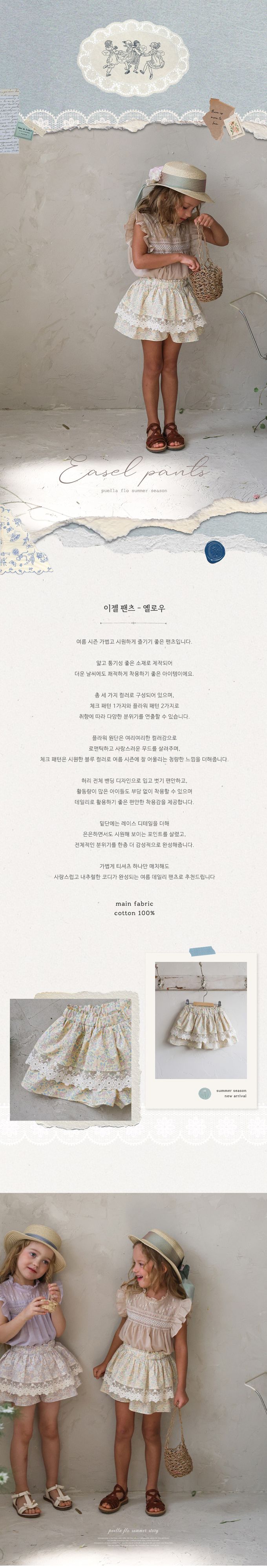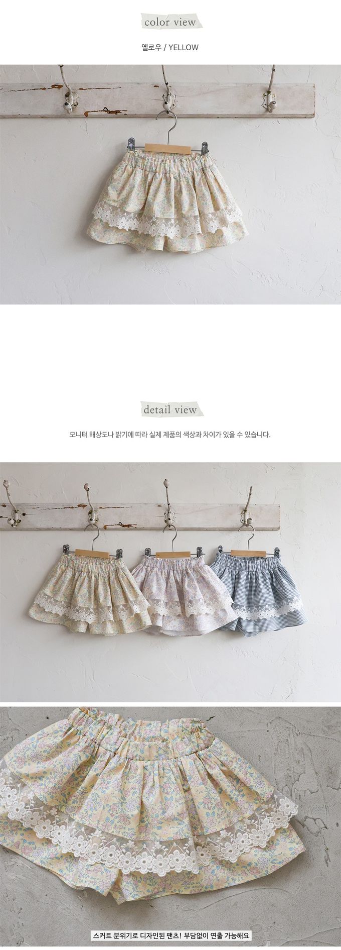 韓國南大門童裝 - Puellaflo 鬆緊腰夢境花漾層次裙褲-淺黃